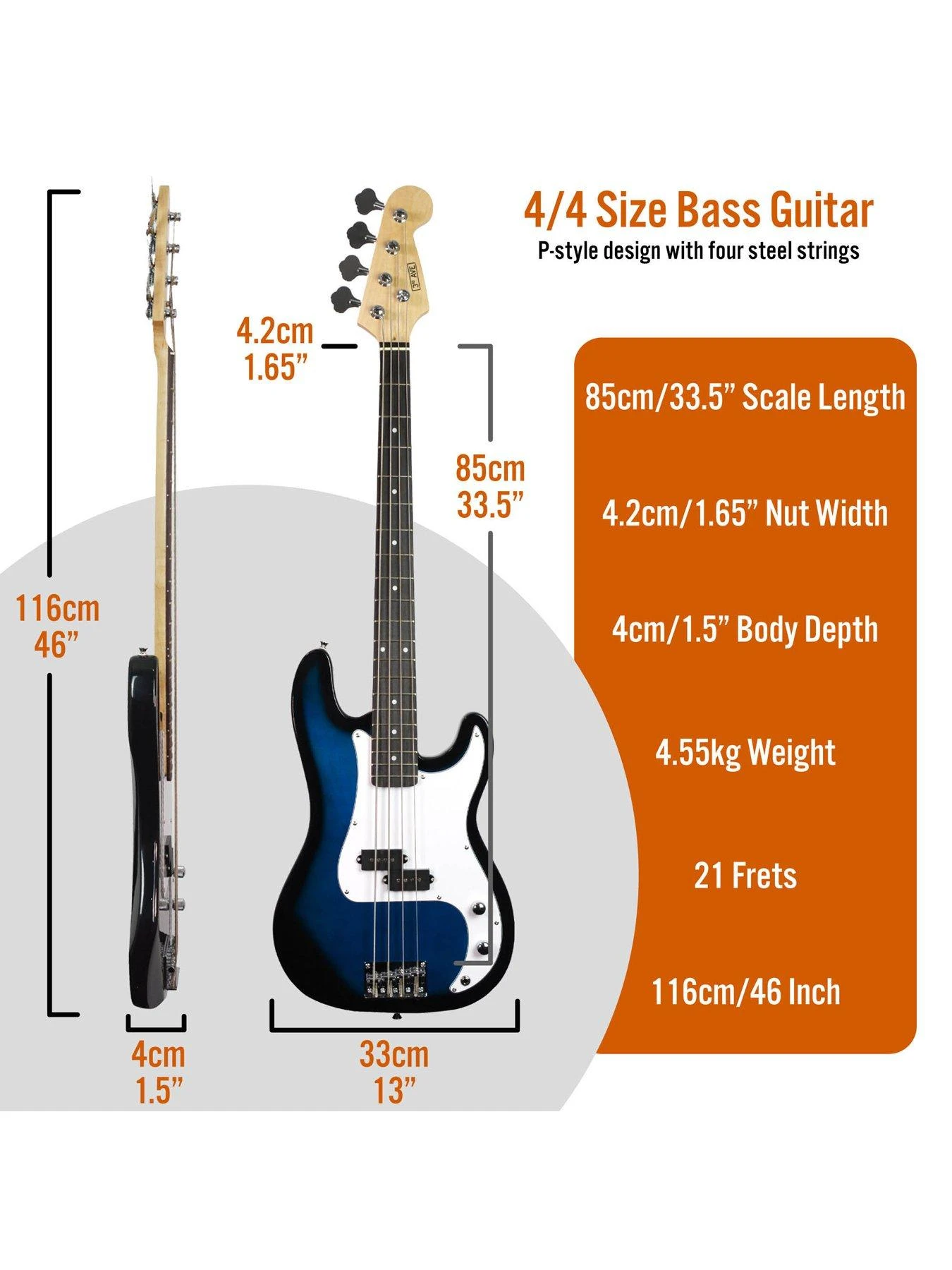 - 4/4 size bass guitar pack, suitable for ages 12+