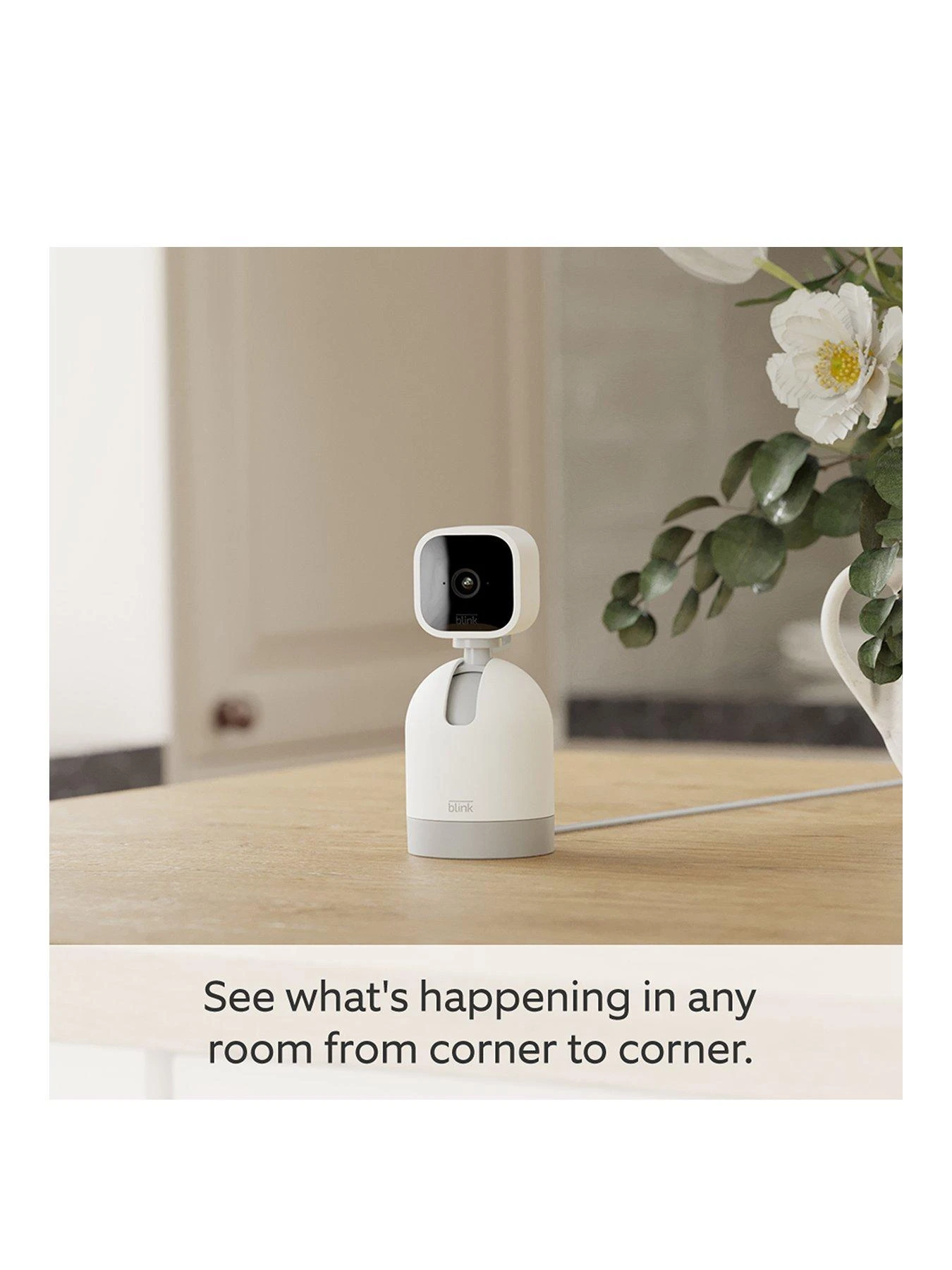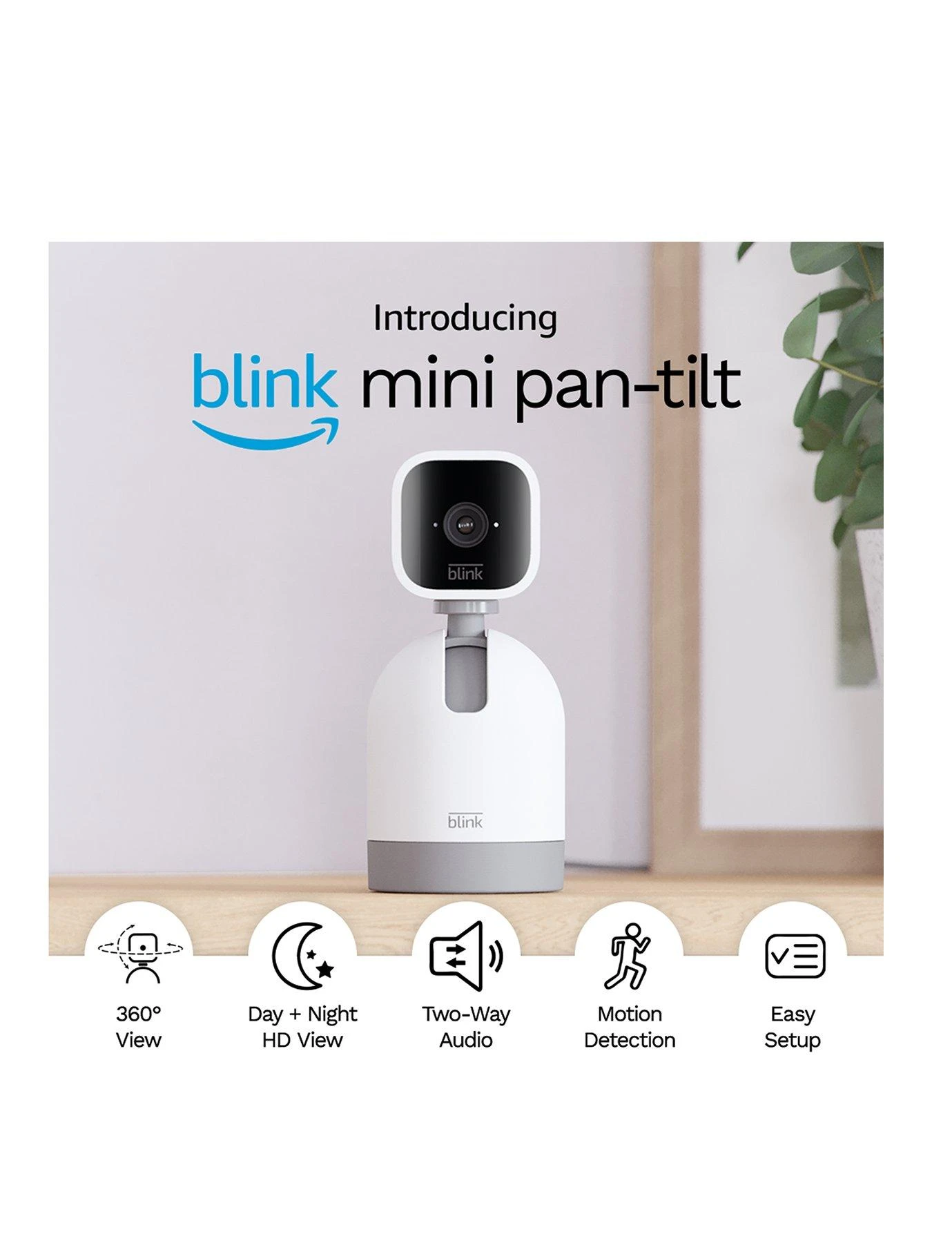 The Blink Mini Pan-Tilt Camera allows you to see what’s happening inside any room from corner to corner with 360° coverage from your smartphone, tablet or compatible Alexa device.