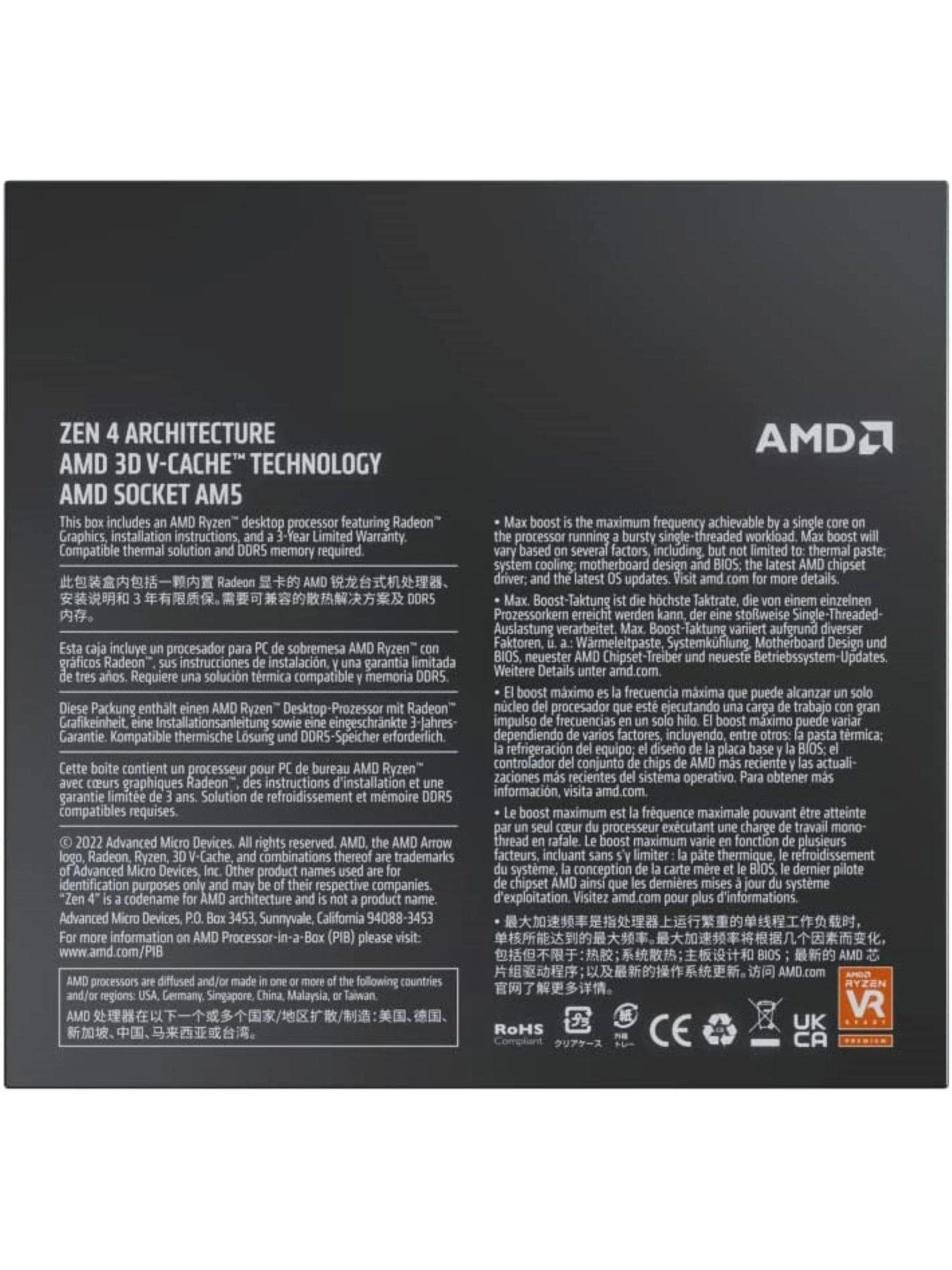 AMD Ryzen 9 7900X3D Retail – (AM5/12 Core/4.40GHz/128MB/120W/Radeon) – 100-100000909WOF