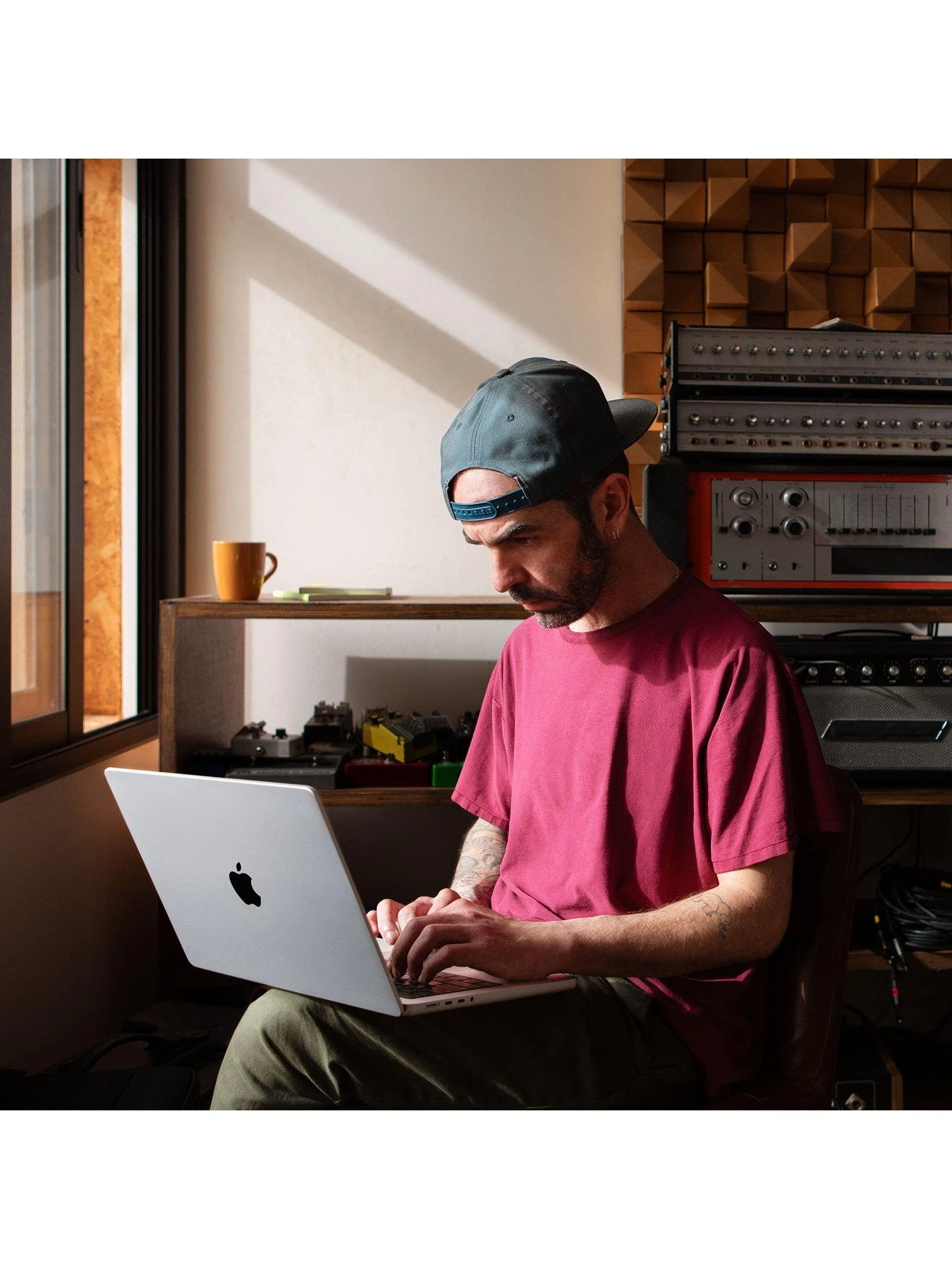 1Battery life for Apple TV app movie playback. Battery life varies by use and configuration. 2The display on the 14-inch MacBook Pro has rounded corners at the top, the screen is 14.2 inches diagonally (actual viewable area is less). 3Compared with previous generation. 4Speeds are based on theoretical throughput and may vary. Wi-Fi 6E not available in China mainland. Requires macOS 13.2 or later in Japan.