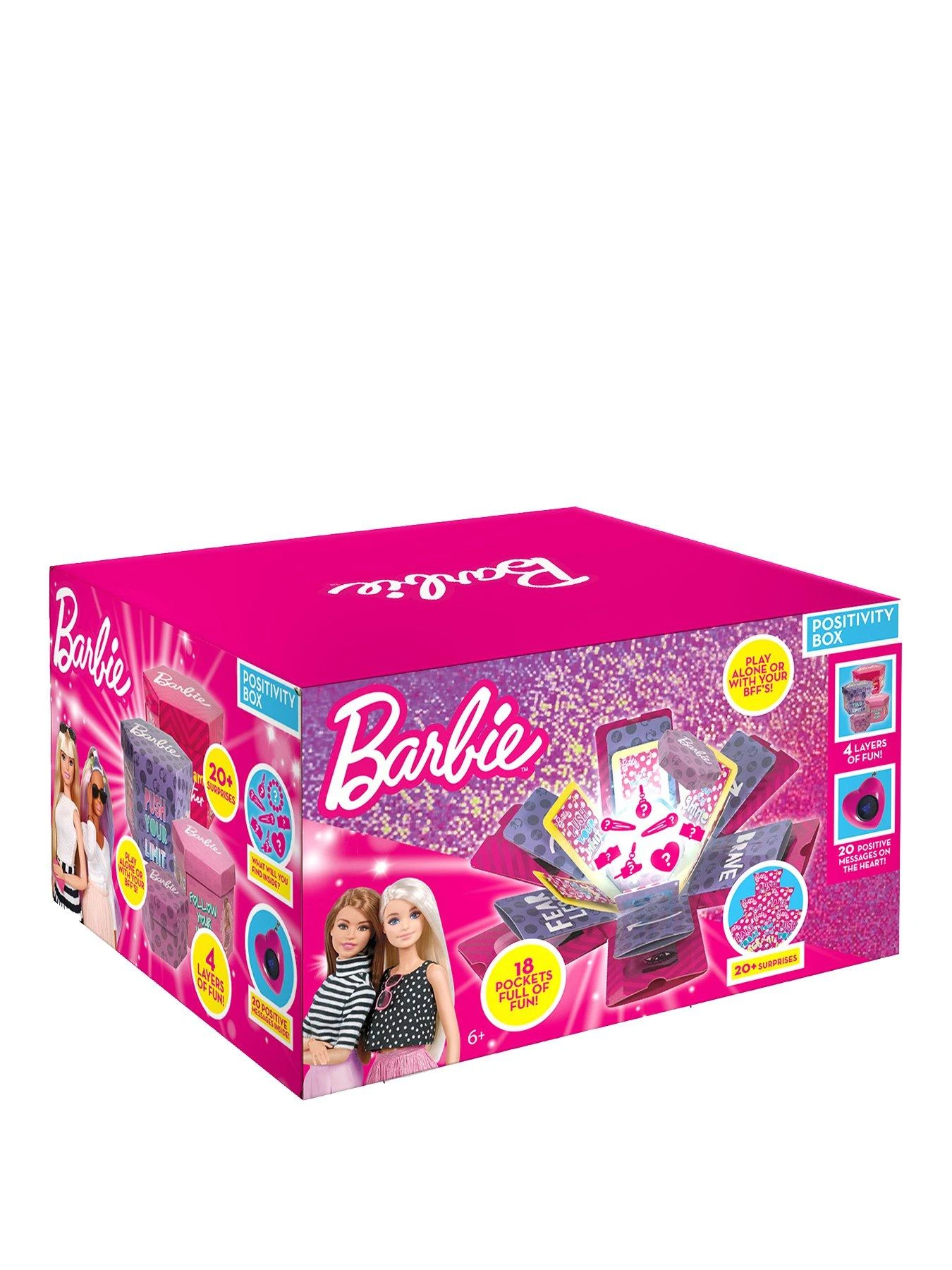 THIS barbie positivity box has 4 layers of fun to be enjoyed by yourself or your BFF’S. Its has 20 surprises including hair , jewellery , stickers and others surprise accssories for you to open. For ages 3 and above.