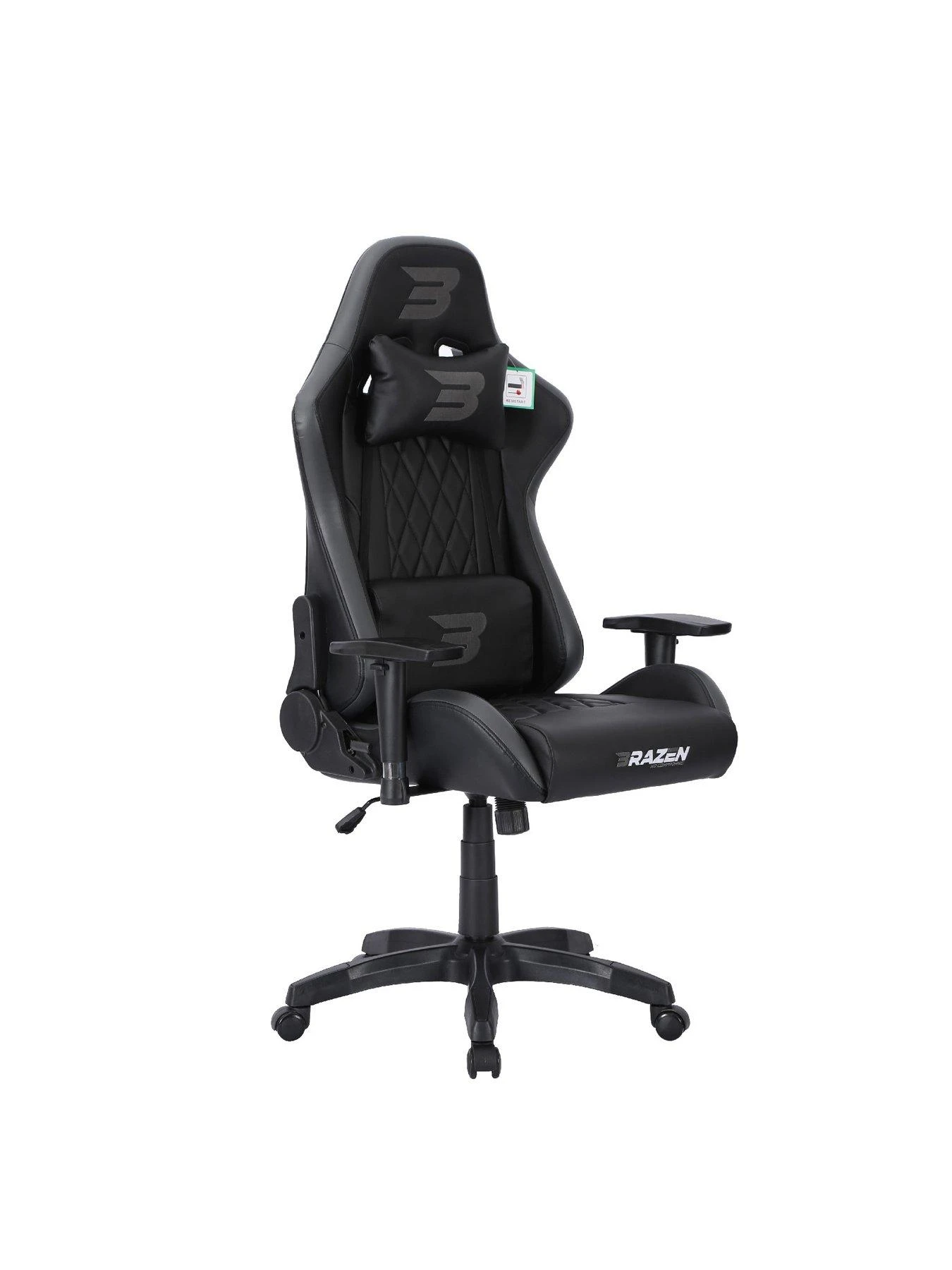 The BraZen Emperor has adjustable armrests, lumbar and neck cushions. Providing extra comfort is a faux leather PU upholstered bucket seat with ample foam padding. To provide greater mobility the chair has 360 degree swivel capability and durable nylon non-slippery casters.