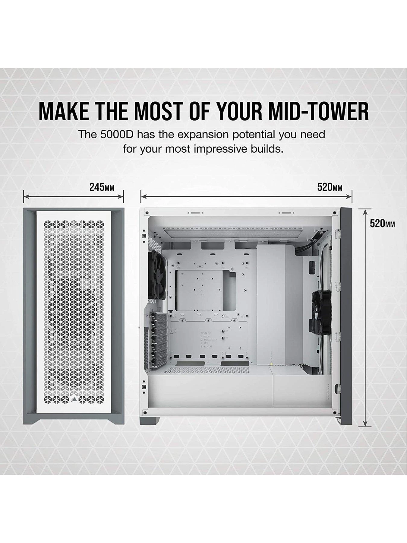 CORSAIR 5000D Airflow Tempered Glass Mid-Tower, White Gaming Desktop Case