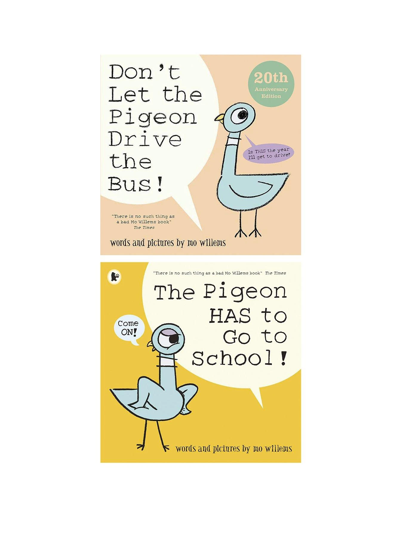 Two Book Set. 1. Don’t let the pigeon drive the bus – When a bus driver takes a break in this hilarious Caldecott Honor-winning picture book, he gives the reader just one instruction: “Don’t let the pigeon drive the bus!” But, boy, that pigeon tries every trick in the book to get in that driving seat: he whines, wheedles, fibs and flatters. Will you let him drive? Told entirely in speech bubbles, this brilliantly original and funny picture book demands audience participation. 2. The pigeon has to go to school – The Pigeon is about to get SCHOOLED. Do YOU think he should go. Why does the Pigeon have to go to school? He already knows everything! Well … almost everything. And what if he doesn’t like it? What if the teacher doesn’t like him? I mean, what if he learns TOO MUCH