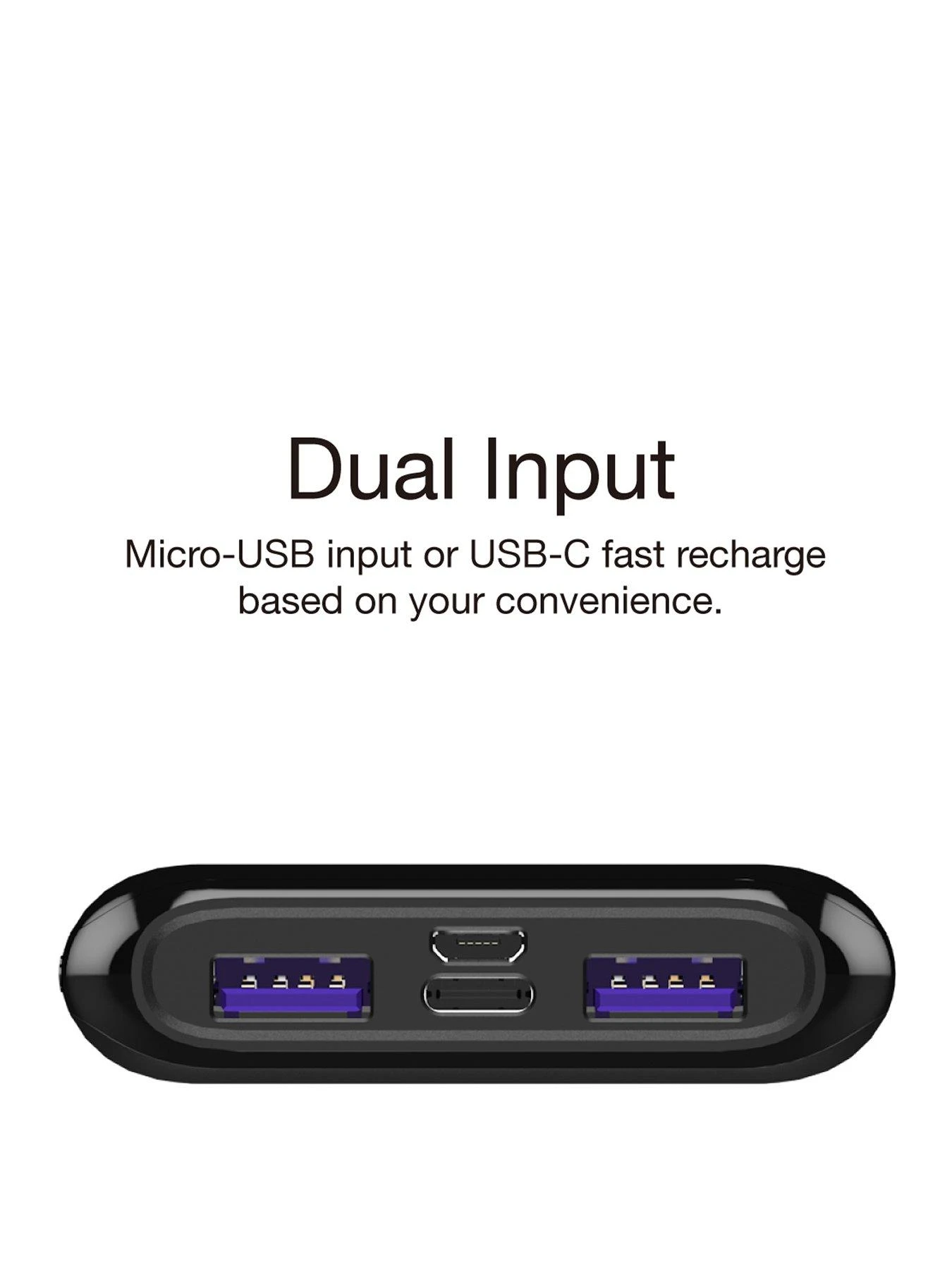 - Dual inputs allows you to recharge through USB-C Power Delivery (PD) or micro-USB for convenience