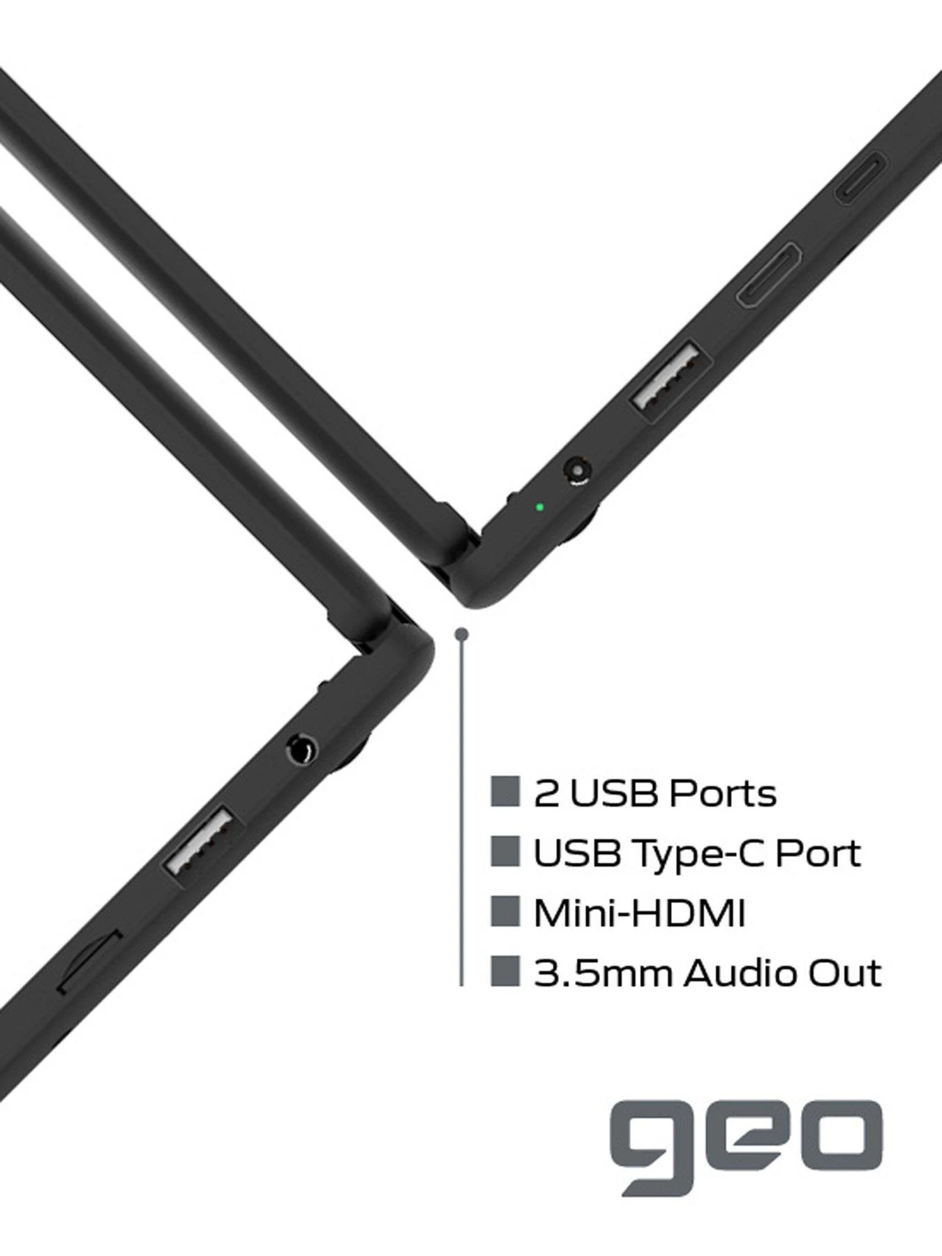 Designed for versatility, GeoFlex 110 is a convertible 2-in-1 laptop and tablet built to adapt to your needs. Compact and portable, it’s ready to go anytime, anywhere. Easily switch between laptop and tablet modes to make the most of the 11.6-inch HD touchscreen – perfect for watching movies, browsing, work or study wherever you might be.