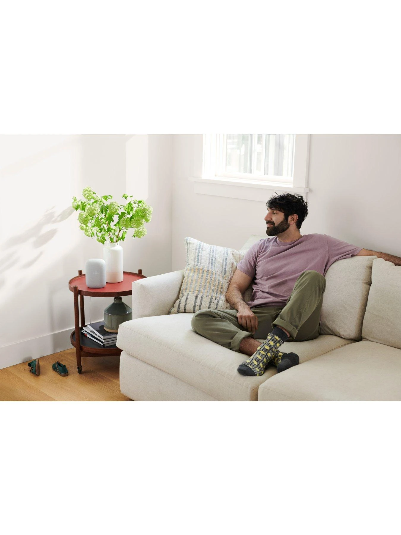 Just say, “Hey Google, play music”, and crisp vocals and powerful bass fill the room. Play your favourite music, radio, podcasts and audiobooks from the streaming services that you use the most. Nest Audio adapts to your environment and whatever you’re listening to, so that music sounds better. And news, podcasts and audiobooks sound even clearer.
