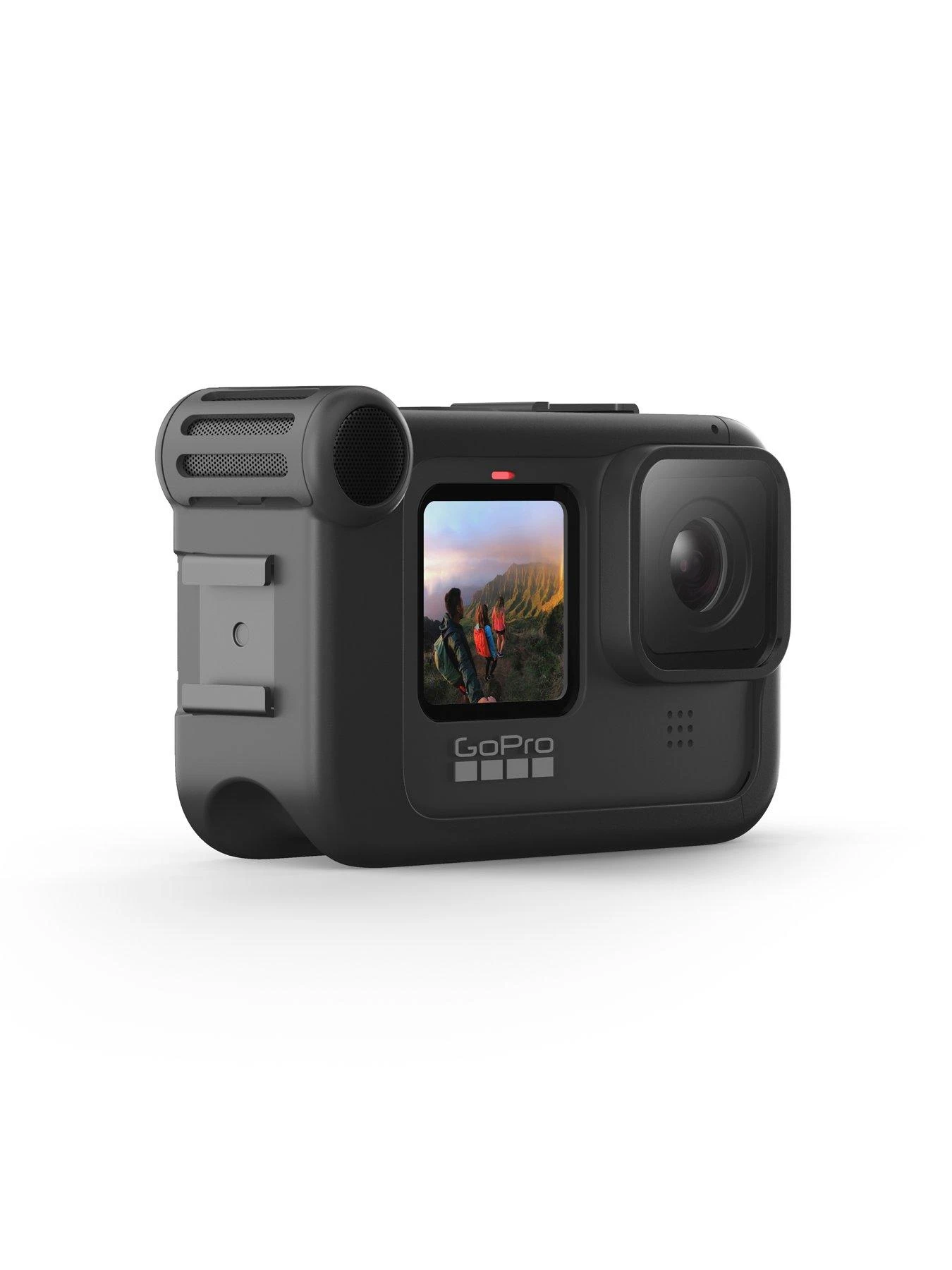 Turn your HERO9 Black into a production powerhouse. Media Mod features a built-in directional mic with wind-suppression, 3.5mm mic port, HDMI-out, two cold-shoe mounts and tough weather-resistant construction.