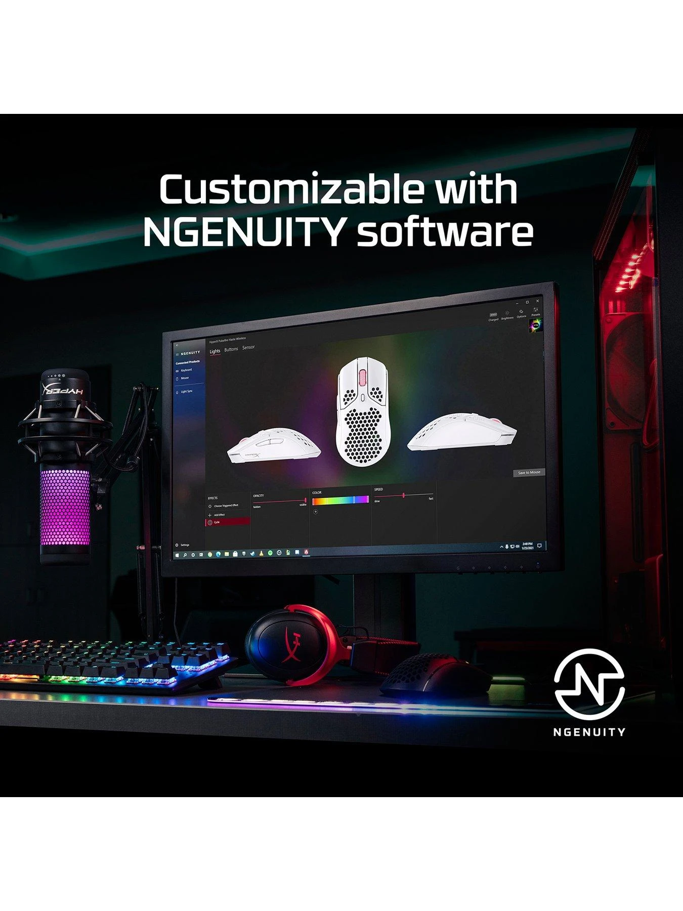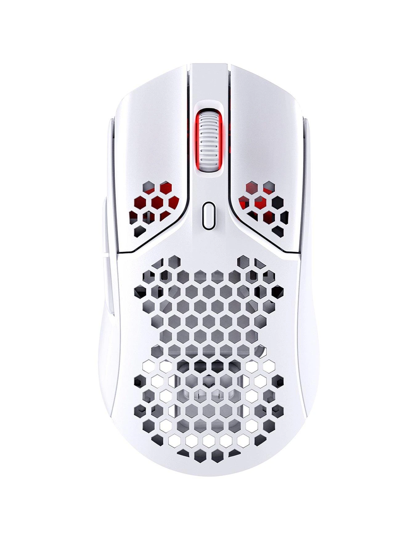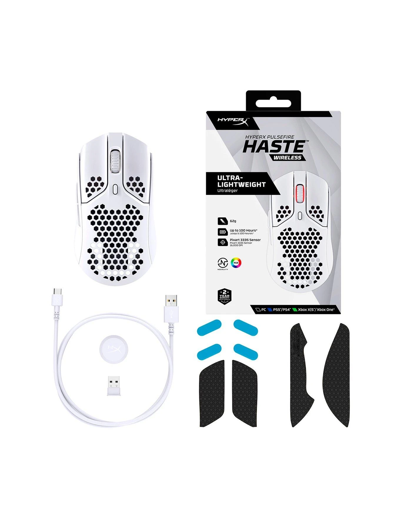The HyperX Pulsefire Haste Wireless Gaming Mouse packs in all the best features of the ultra-lightweight Pulsefire Haste plus a wireless connection and long-lasting battery life, but only adds a mere 2g of additional weight**. If you’ve been hesitant to cut the mouse cord, fear not, as the Pulsefire Haste’s 1ms report rate and 2.4GHz signal provides a low-latency wireless connection that meets the demands of elite players. Not only that, but with up to 100 hours of battery life**, you’ll get over 4 full days of clicking on heads from a single charge of your honeycomb mouse. With a responsive, split-button design, you won’t have to worry about missed clicks, as the satisfying, tactile TTC Golden micro switches are rated for up to 80 million clicks. If you prefer a cable, HyperX also includes a HyperFlex cable which teams up with the virgin-grade PTFE skates to deliver a smooth, easy glide. Bullet Points – 2.4 GHz wireless with up to 100-hour battery life*** – Ultra-light hex shell design – Anti-dust, water-resistant – TTC Golden Micro Dustproof Switches – Pure virgin-grade PTFE Skates – Grip tape included – Customizable with HyperX NGENUITY Software – Pixart 3335 Sensor – Multi-platform compatibilit