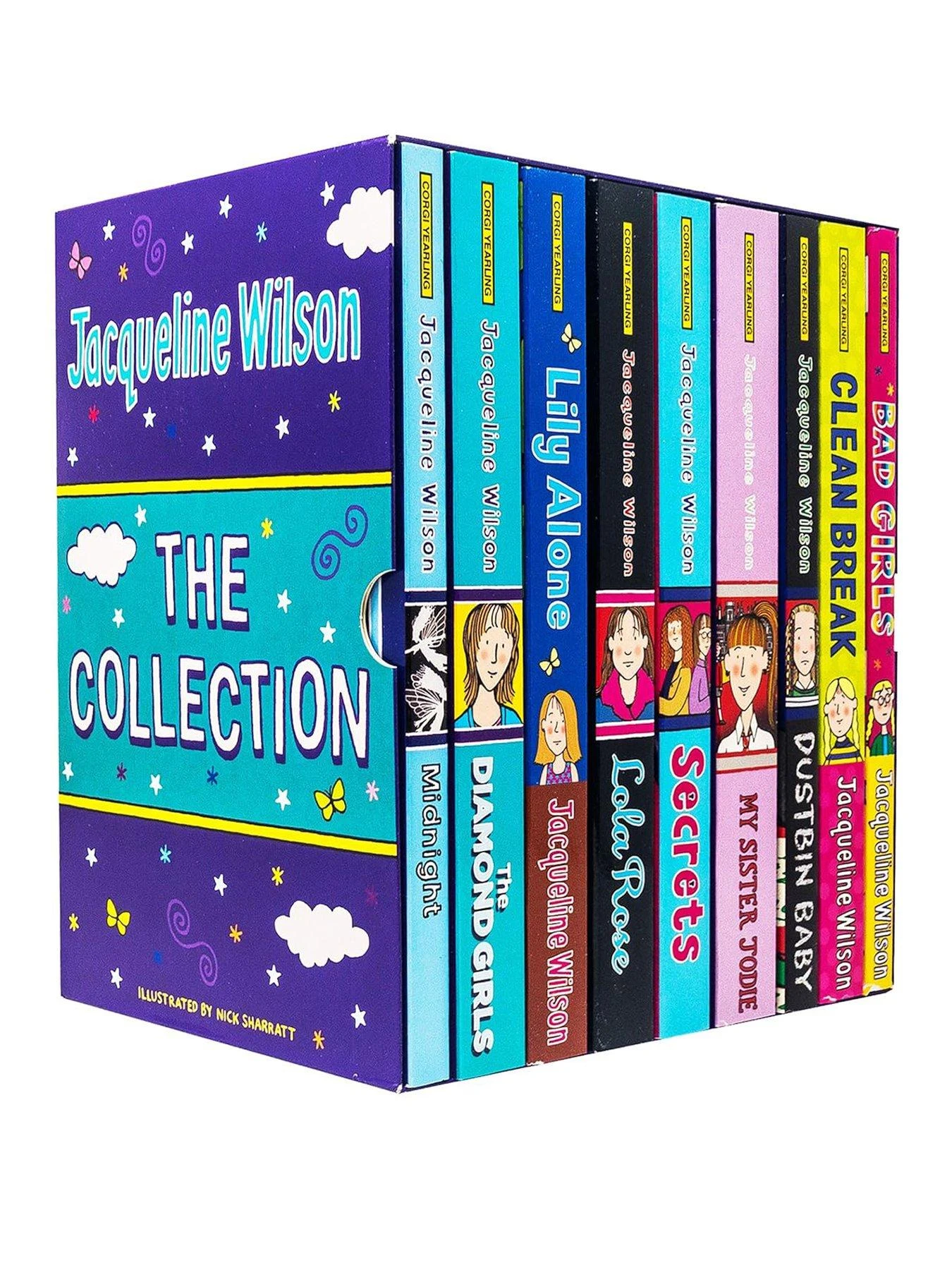 Jacqueline Wilson – 9 Book Collection. Titles in this collection include – Bad Girls, Clean Break, Dustbin Baby, My Sister Jodie, Secrets, Lola Rose, Lily Alone, The Diamond Girls, Midnight.