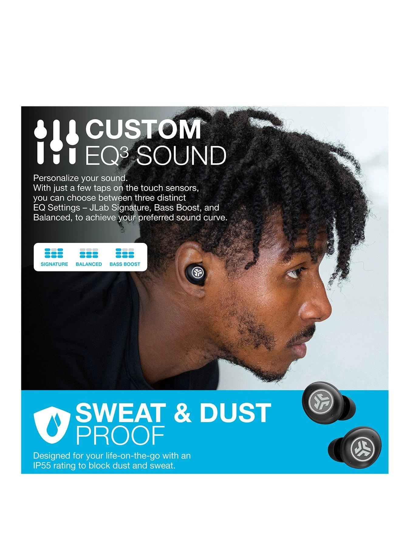 - EQ3 Sound: Choose your sound preference with just a few taps via touch sensors: JLab Signature, Balanced and Bass Boost modes – without an app.