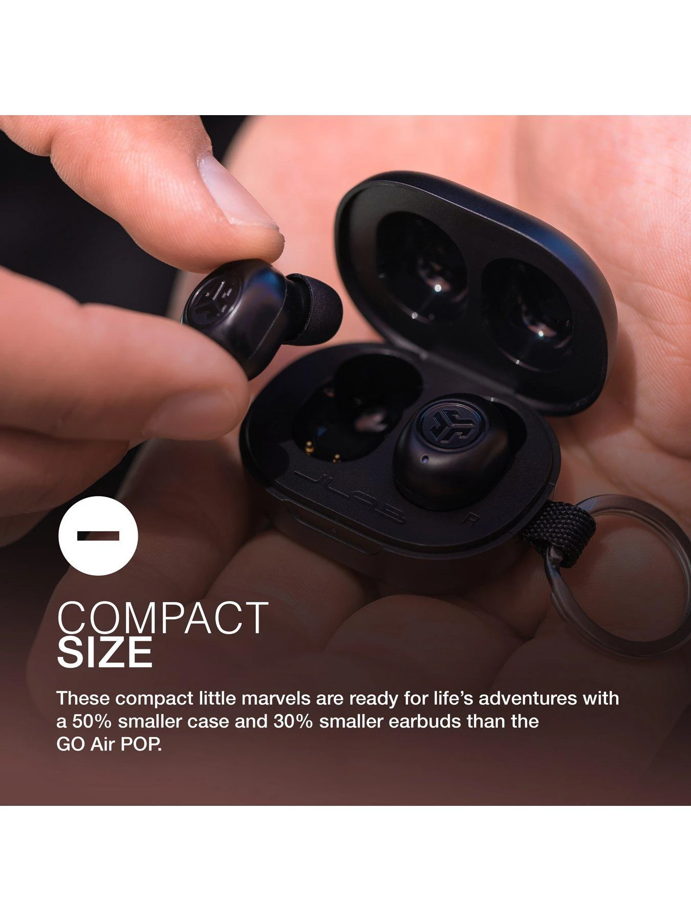 - 50% smaller case then GO Air POP, 30% smaller earbuds