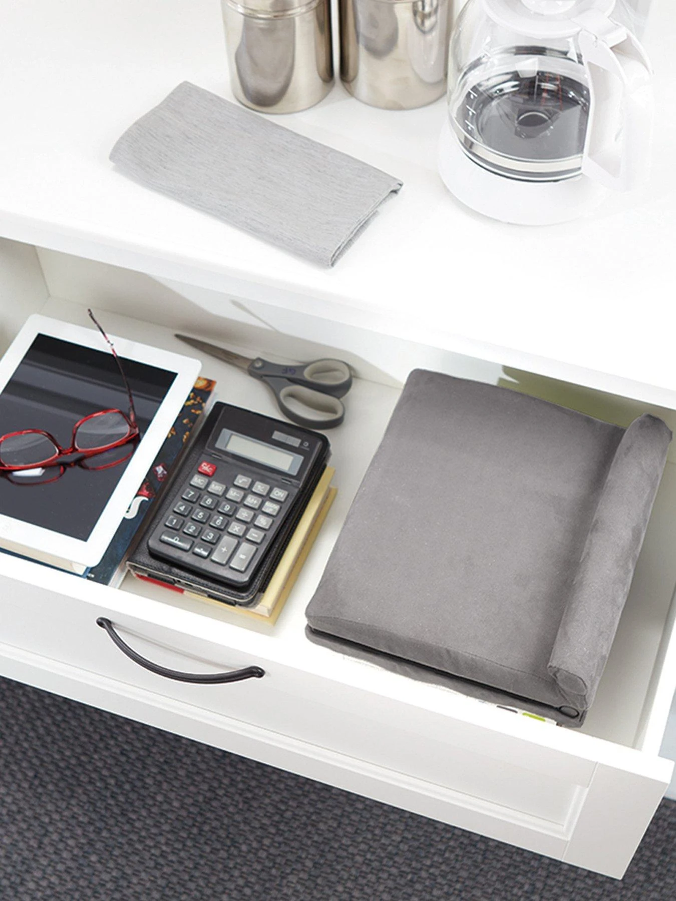 Pill O Pad Foldaway is the super- soft, lap-mounted tablet stand that holds your tablet, e-reader or book at the perfect angle to read, view and interact no matter how you are relaxing. With a wide range of viewing angles, designed for the perfect view in any position, you can sit upright, recline and even lie down flat and Pill O Pad Foldaway will hold your tablet at an angle that’s just right. Now, with Pill O Pad Foldaway, you can have hands-free access to your touch screen, book or magazine for typing, playing games, scrolling or just turning a page without the possibility of aching wrists, hands and arms that holding tablets and books can cause. With a super-soft, comfortable surface and an ultra-lightweight cushion-foam core, Pill O Pad Foldaway will make relaxing screen time or reading even more comfortable.