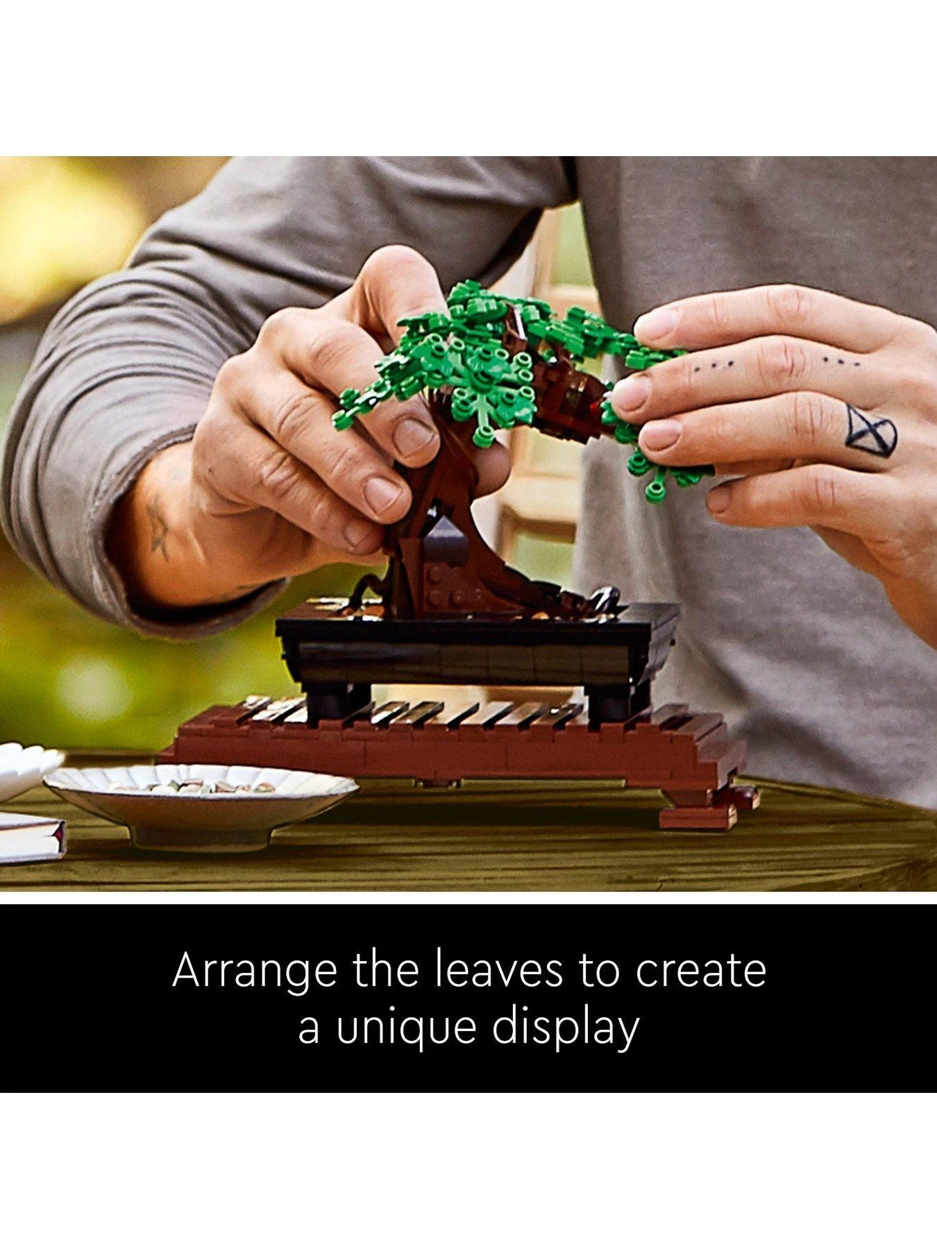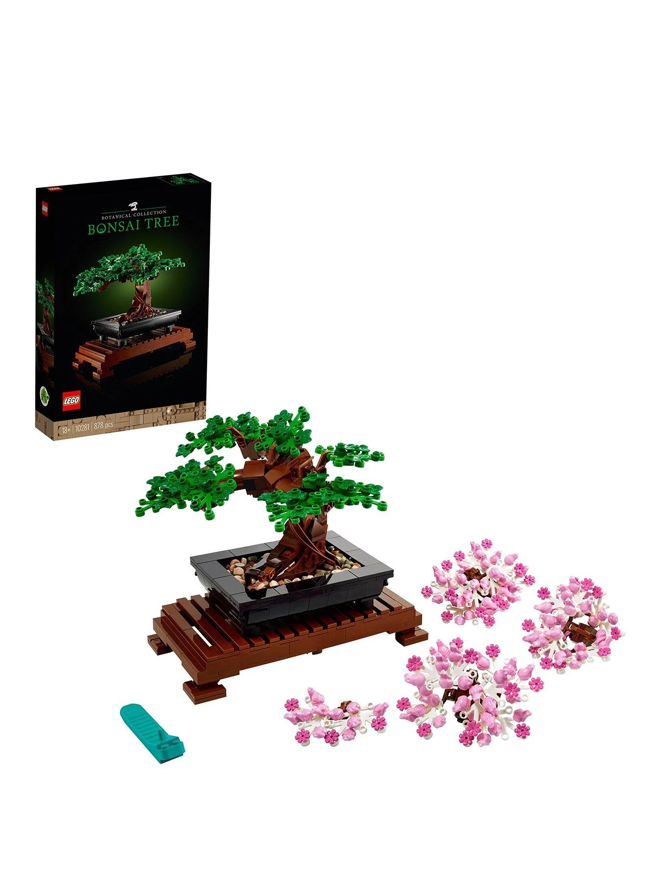 Enjoy a rewarding hobby project as you build a LEGO Bonsai Tree model with interchangeable green leaves and pink cherry blossoms.