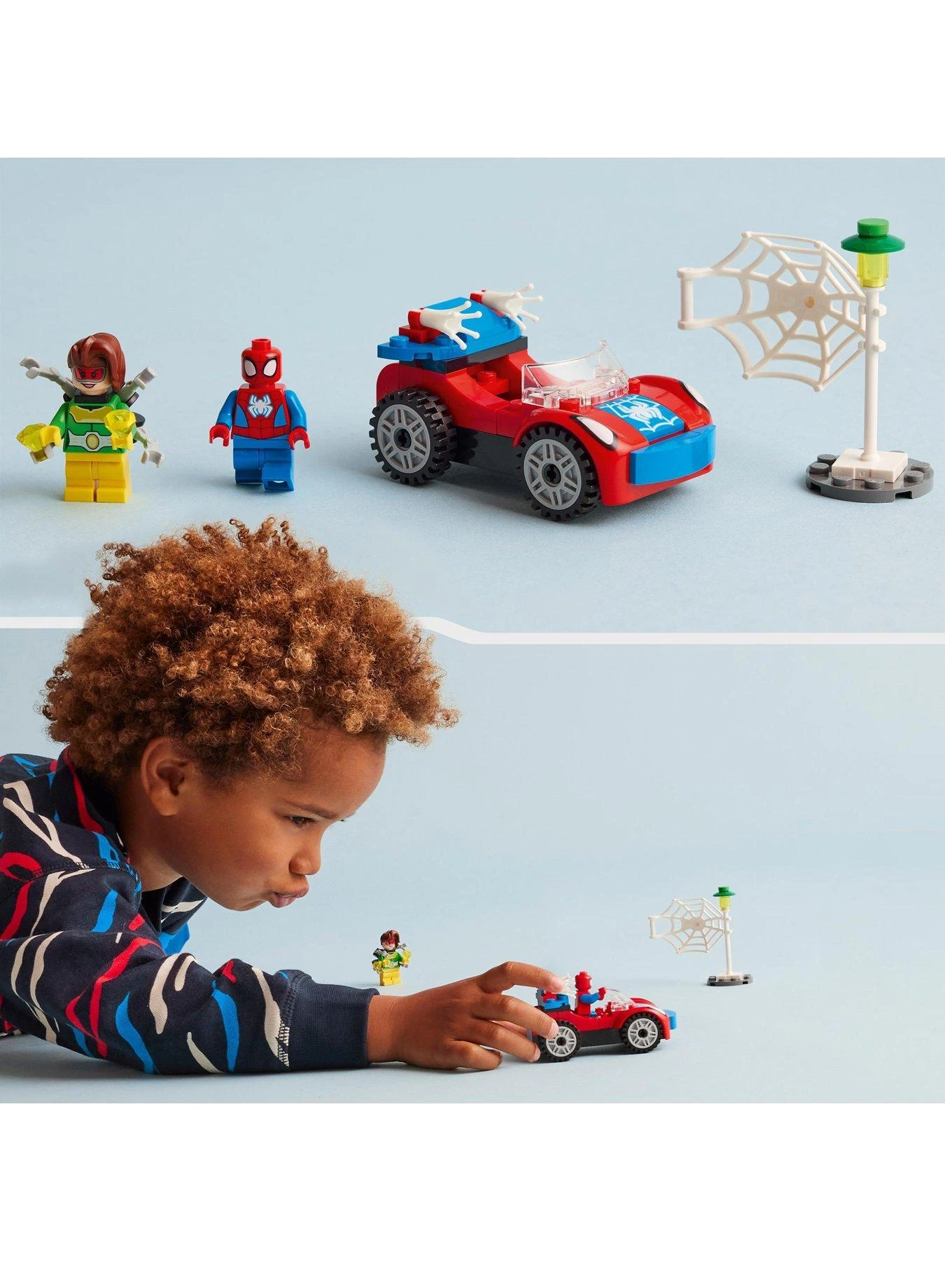 LEGO Marvel Spider-Man building toy for kids aged 4+ years old features a buildable toy car, glow-in-the-dark web elements and 2 minifigures