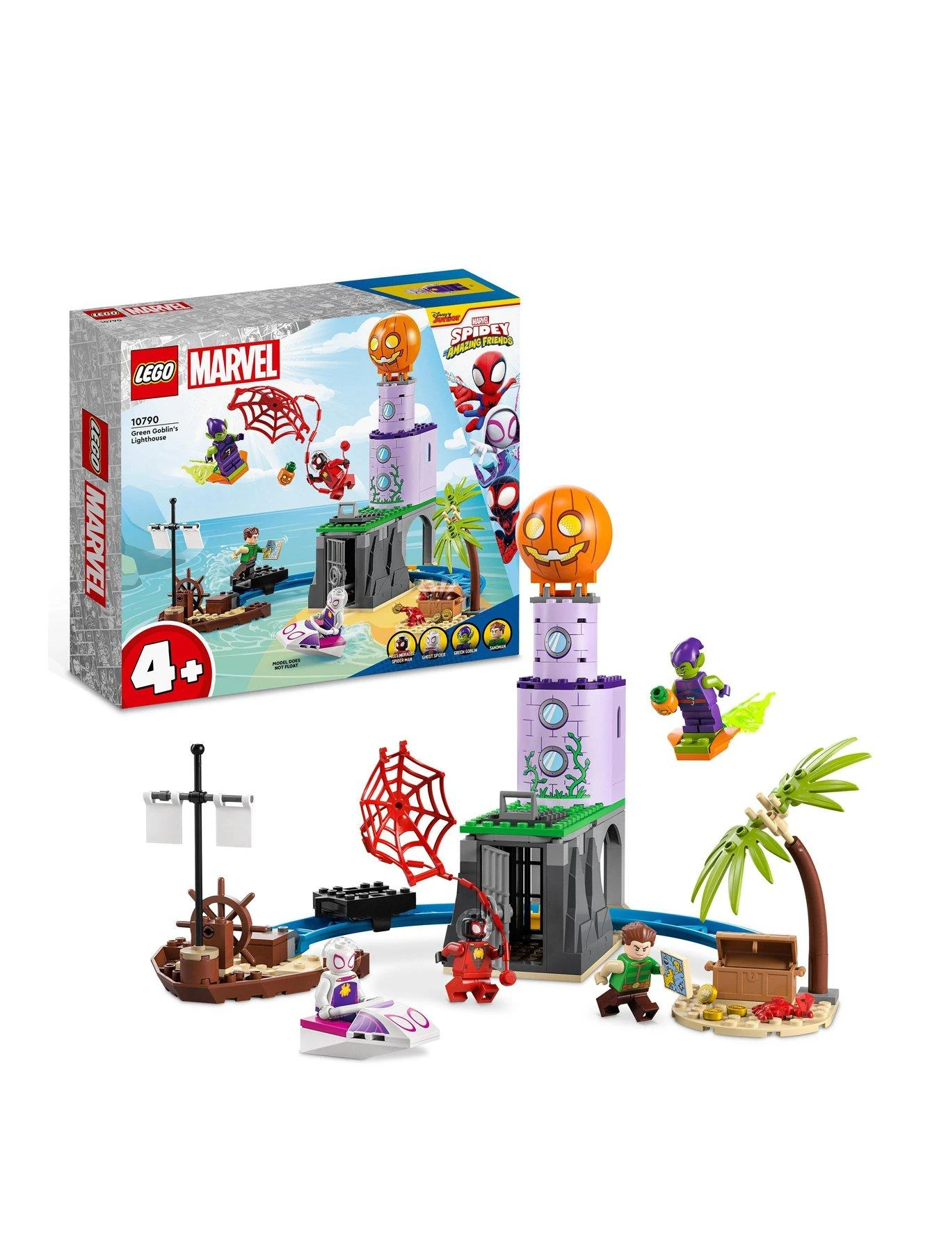 From the underground cave to the pumpkin at the top of the lighthouse, LEGO Marvel Team Spidey at Green Goblin’s Lighthouse (10790) building toy is filled with action designed especially for kids aged 4 plus years old.