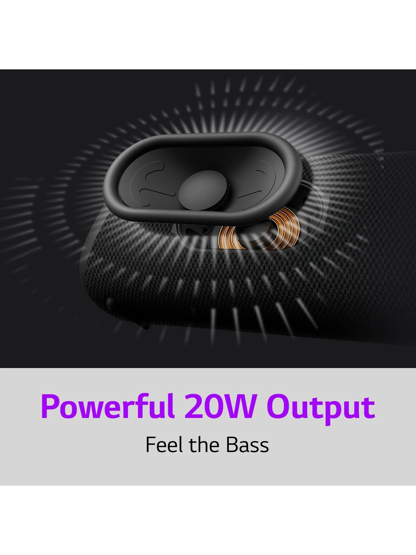 Experience LG XBOOM Go’s remarkable sound that delivers deep bass and powerful sound together with LG’s latest sound technology. With powerful 20W outputs, you can rock to the beat and enjoy an elevated audio experience every time, from meditation to partying with friends.