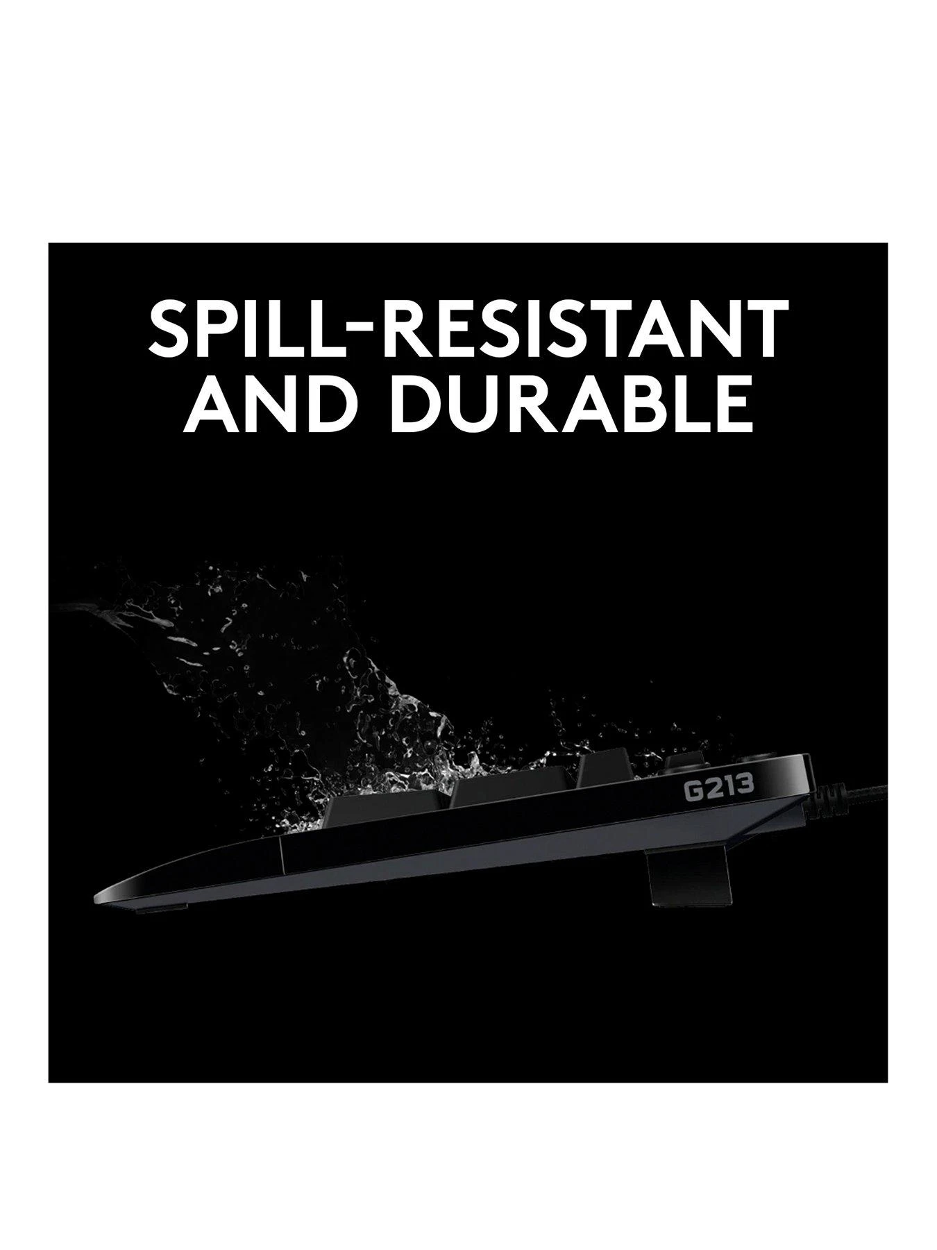 The G213 Prodigy is a full-sized keyboard designed for gaming and productivity. The slim body is built for gamers of all levels, with a durable construction that repels liquids, crumbs and dirt for easy cleanup. An integrated palm rest and adjustable feet let you set your keyboard to the ideal position, so it’s comfortable to use even during the longest gaming sessions.