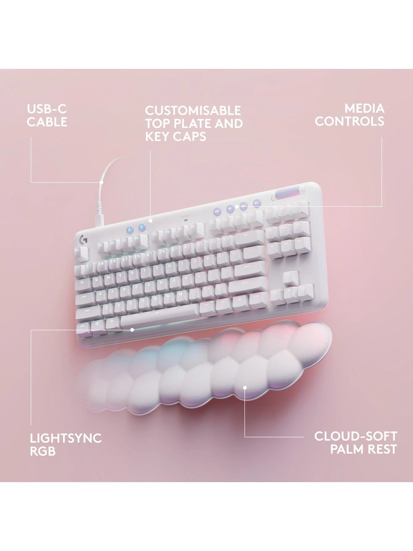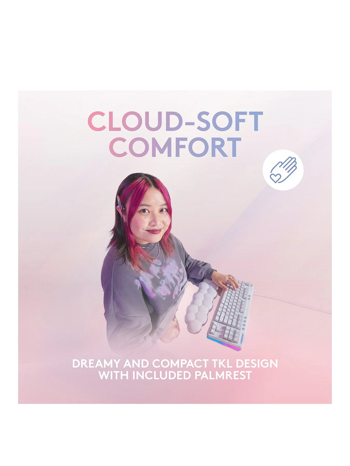 - Cloud-soft Comfort:Float away with the dreamy G713 gaming keyboard, comfy cloud-shaped palm rest, TKL mechanical keyboard layout and adjustable height