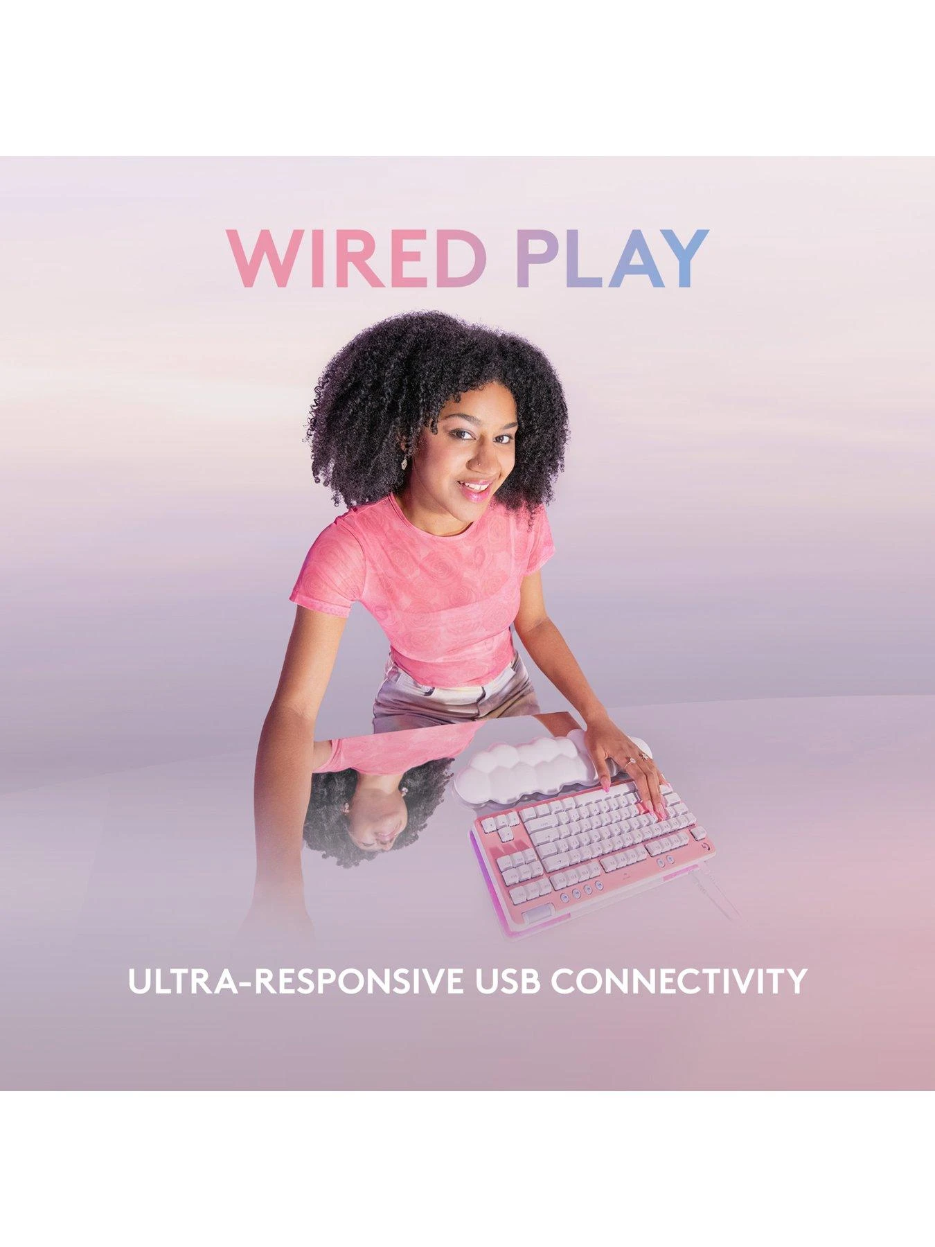 - Lovely Lighting:Per-key and perimeter Logitech LIGHTSYNC RGB backlight with preloaded Play Mood animation and the Aurora Collection signature lighting