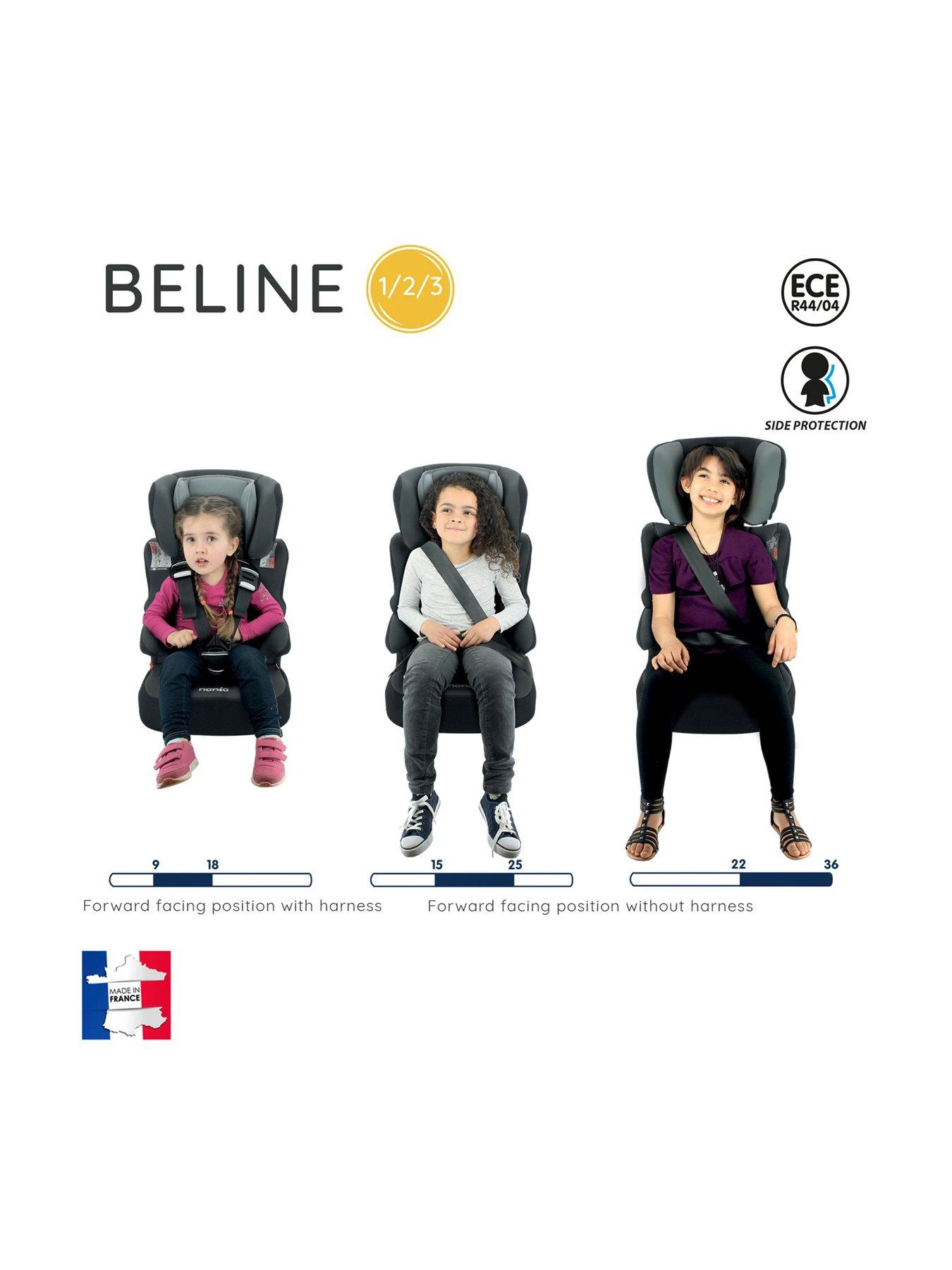 We love the height adjustable head support with side impact protection that grows with your child. It comes equipped with individual harness tensionners for extra security which ensure that both sides of the harness are tightened correctly and safely. Used with the back unit attached throughout use for extra protection, there are also chest and buckle pads for comfort and safety.