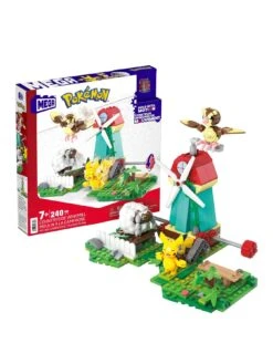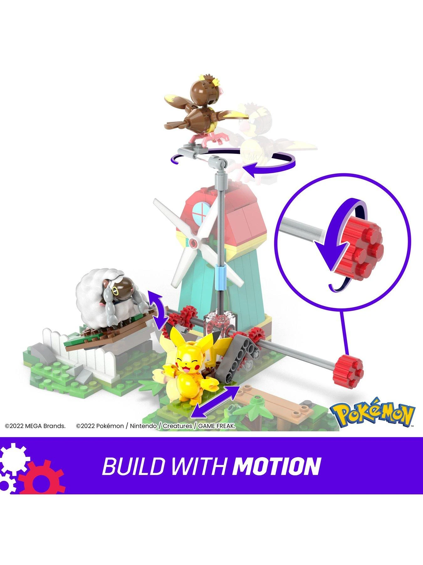 - Includes Pikachu, Pidgey, and Wooloo figures and a buildable windmill and country environment