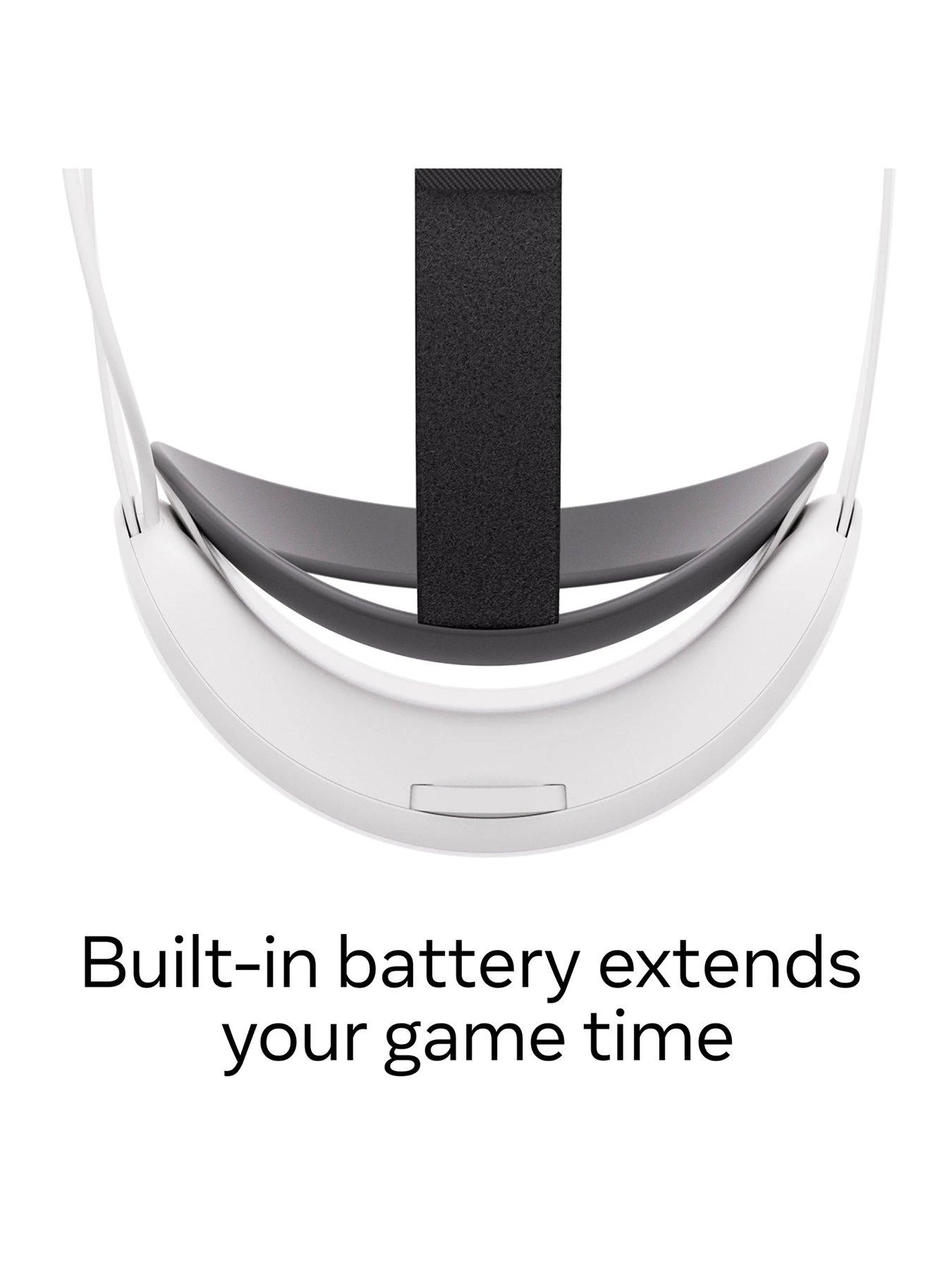 - Play in comfort and get up to two hours additional VR game playtime with this ergonomic, adjustable head strap that features a built-in battery pack.