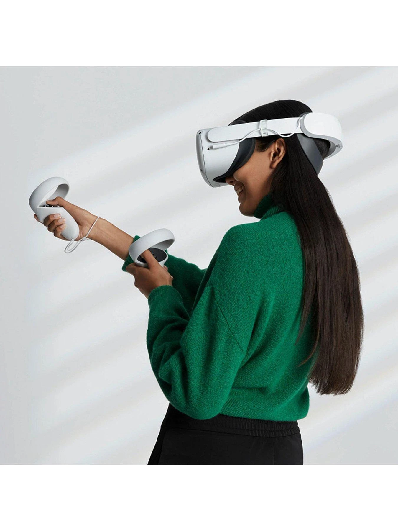 Enjoy up to double the play time* between charges, maximise your comfort and keep your headset secure however much you move. The strap features an additional battery engineered into its rear section for a seamless profile. As well as delivering extended play time, the battery weight is used to rebalance the headset for a lighter feel and more comfortable fit. Rigid stabilising straps keep the headset in place for the clearest visuals, even when you’re in motion. A flexible comfort brace cradles the back of the wearer’s head and a turn of the adjustable fit wheel lets you quickly find the right sizing. Colours, materials and finish are matched to your Quest 2 headset and other official accessories.