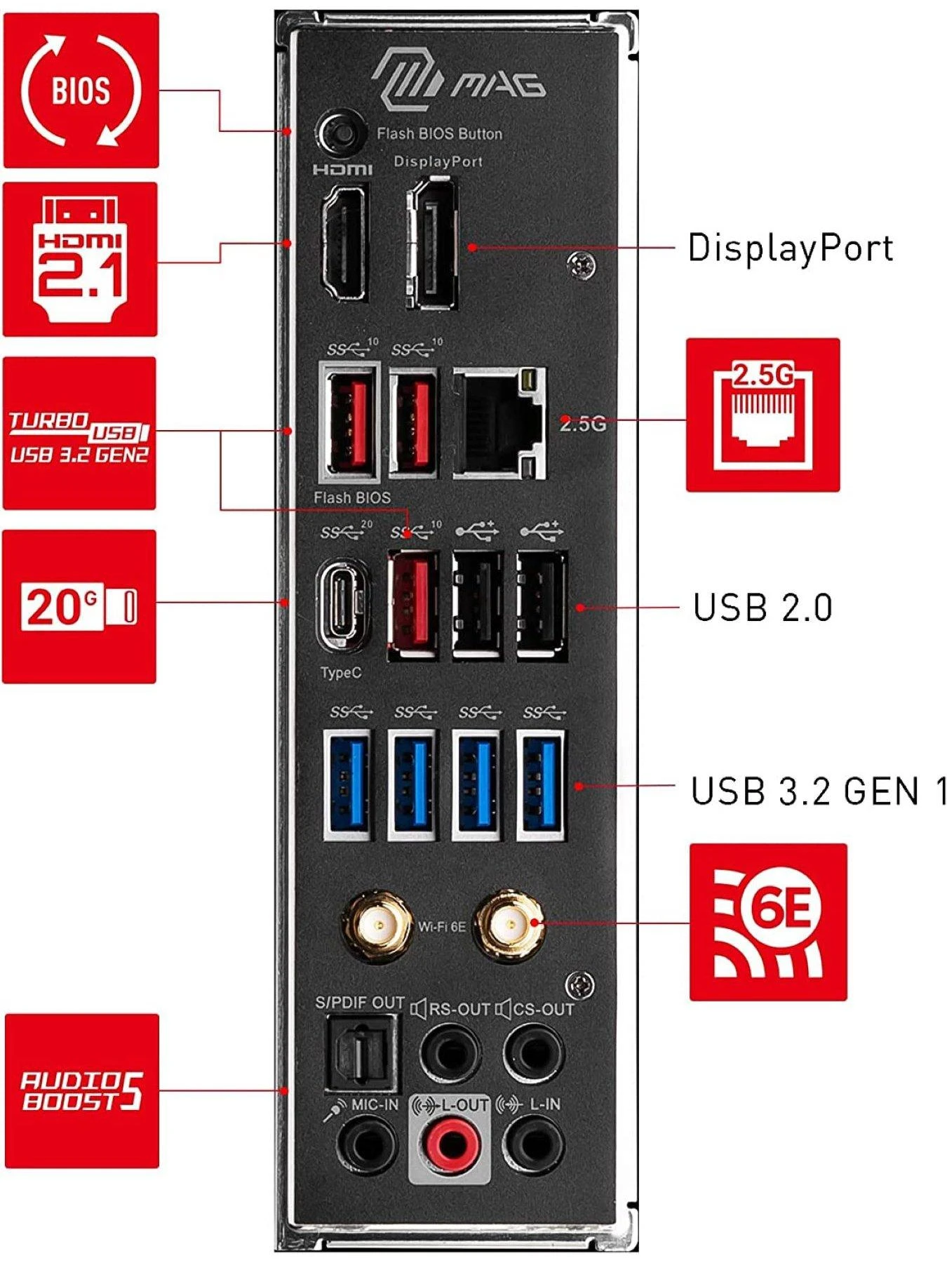 - 2.5G LAN and Intel Wi-Fi 6E Solution: Upgraded network solution for a secure, stable and fast network connection.