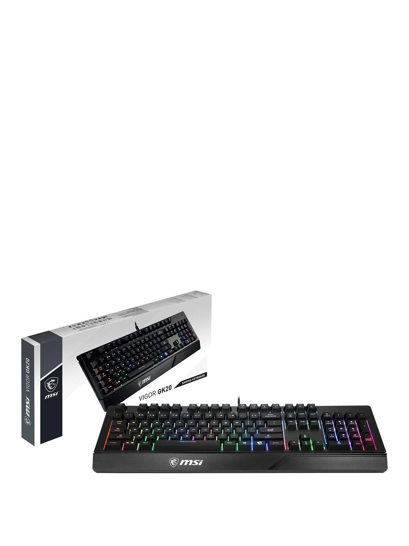 MSI VIGOR GK20 Gaming Keyboard ‘UK Layout, Membrane switches, Static RGB Lighting effect, Ergonomic keycaps, Hotkeys for media and lighting control, water repellent keyboard design’