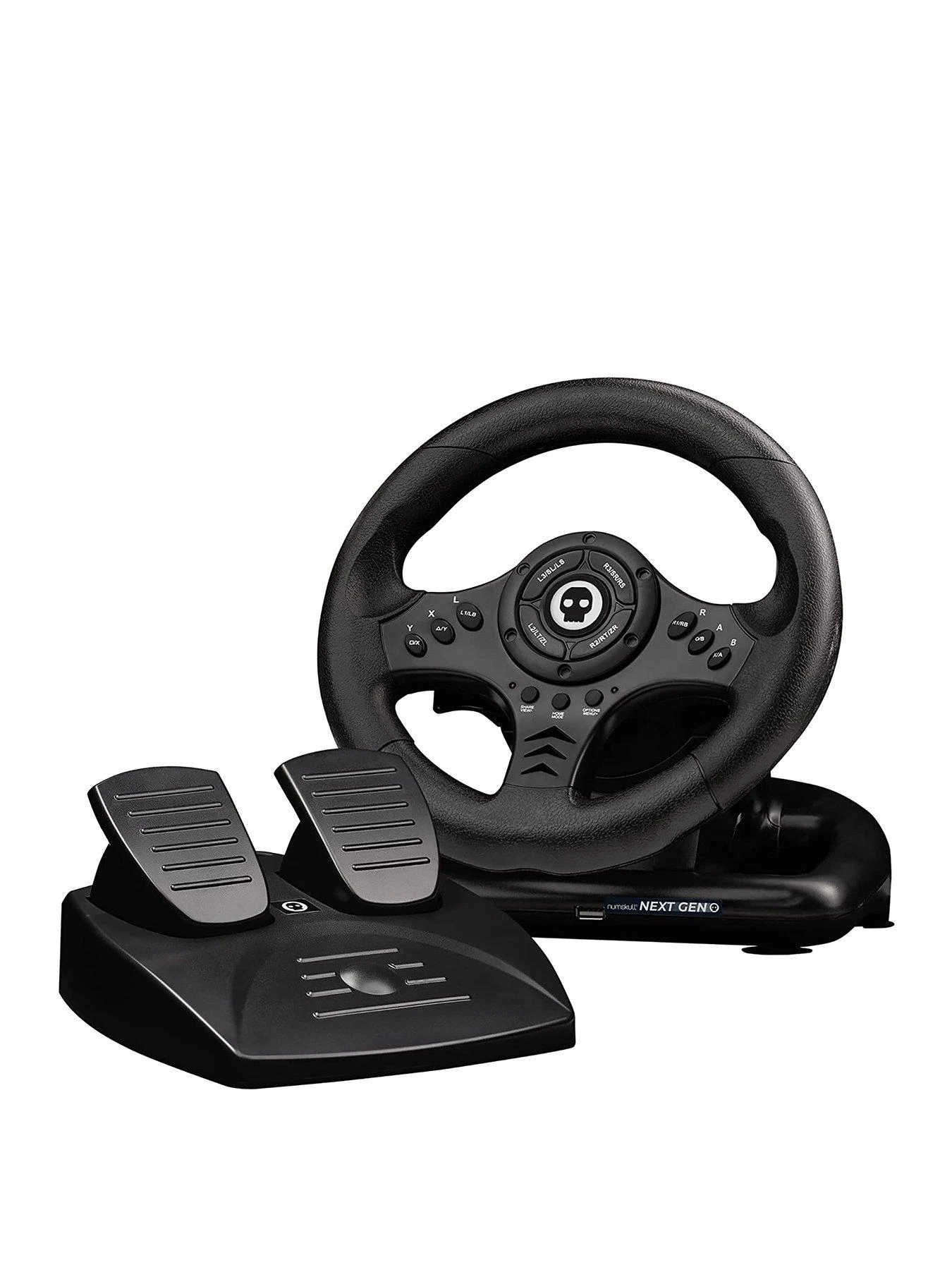 This Next-Gen Multi-Format steering wheel & Pedal set is the perfect compliment to your Xbox Series X|S, Xbox One, PS4, Nintendo Switch or PC setup. Complete with wheel mounted paddle shifters this universal racing wheel is perfect for your favourite driving game. Features a 180-degree rotation for more realism and precision driving, built-in re-programmable buttons, and 3 different driving modes to suit the your style. Official Numskull product.