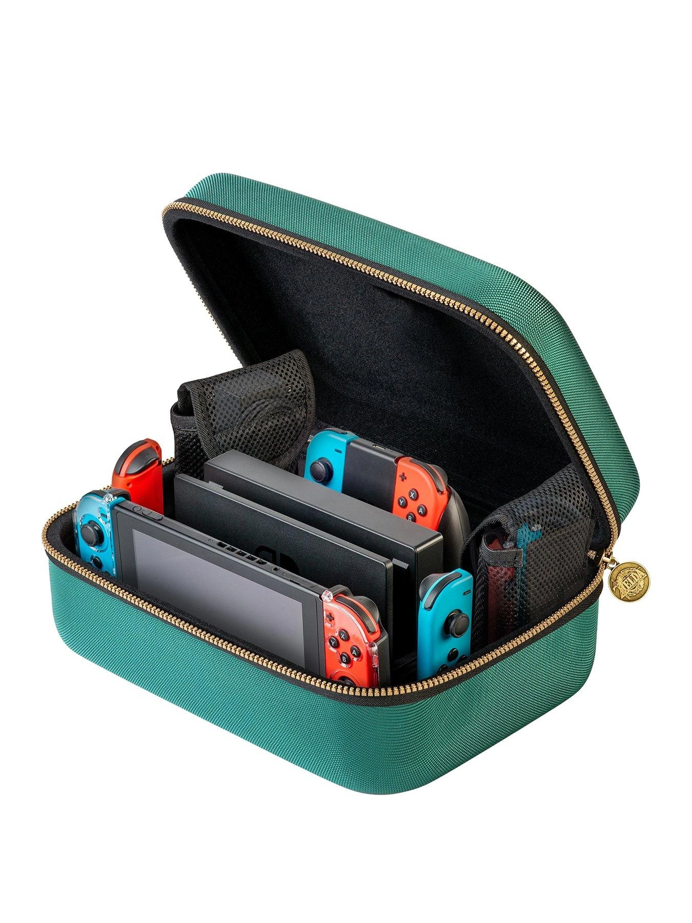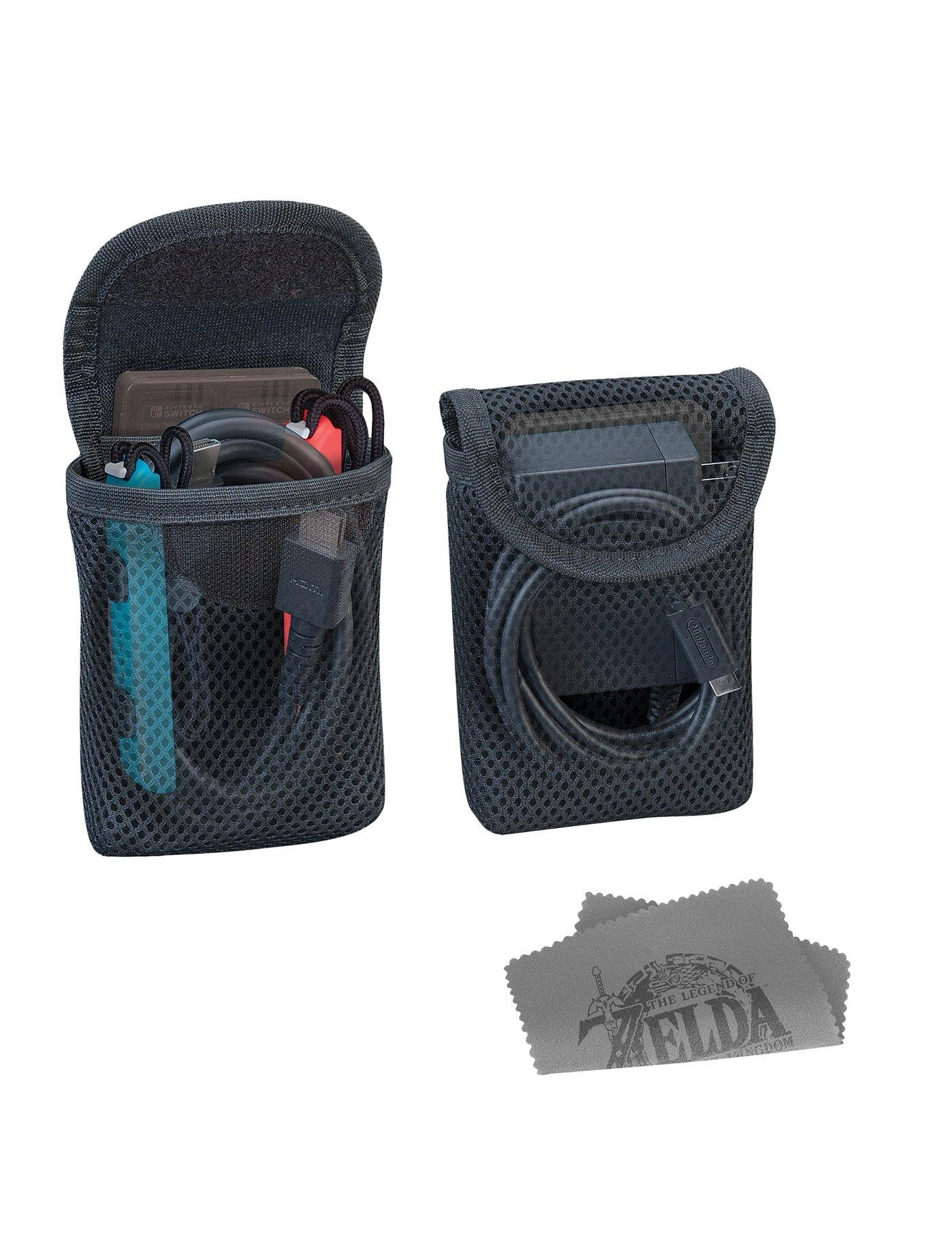 Mesh Pockets 2 pcs Holds AC adaptor with power cord, HDMI cable and Joy-Con Straps. Inner compartment holds Game Card Case.