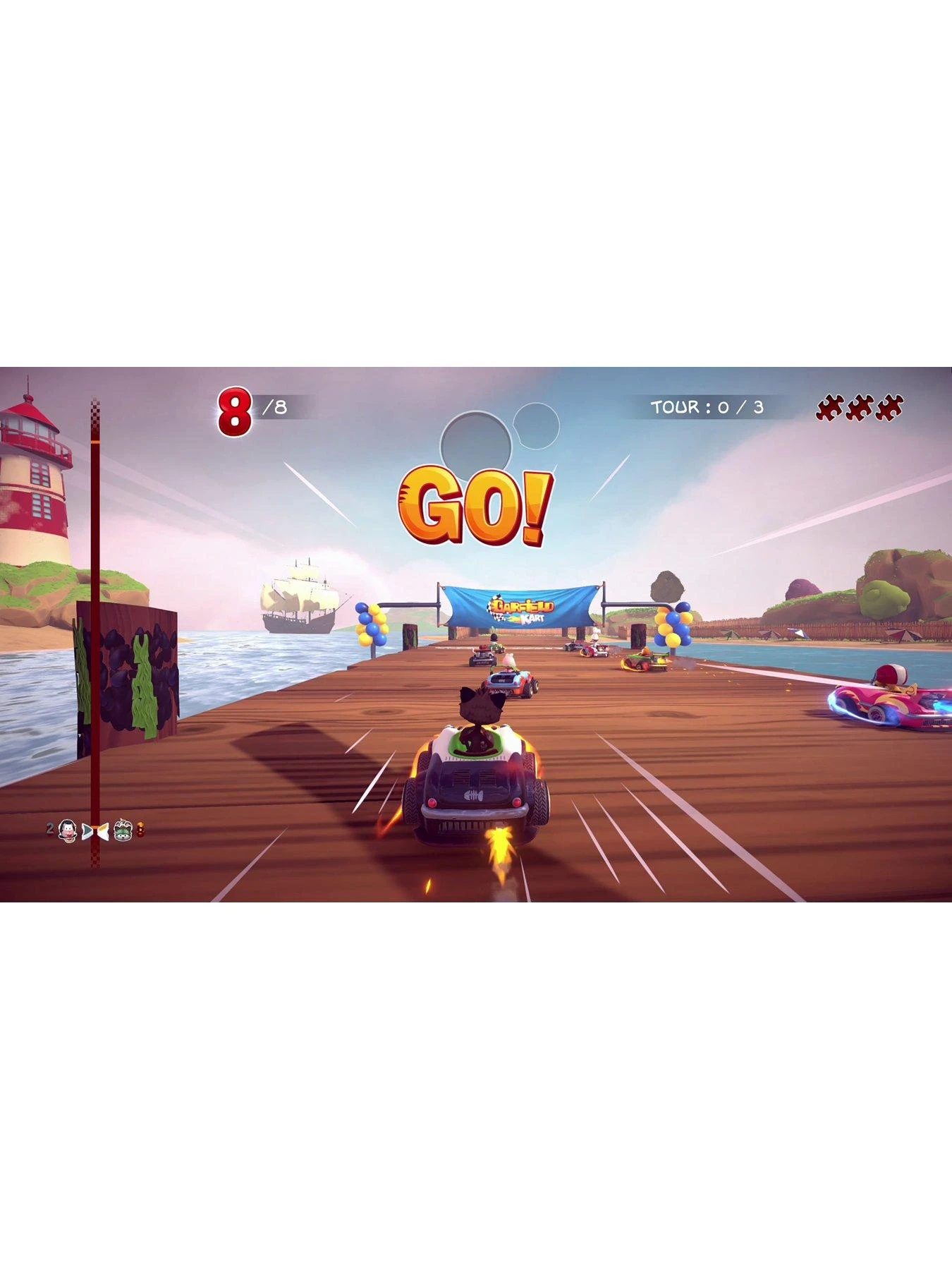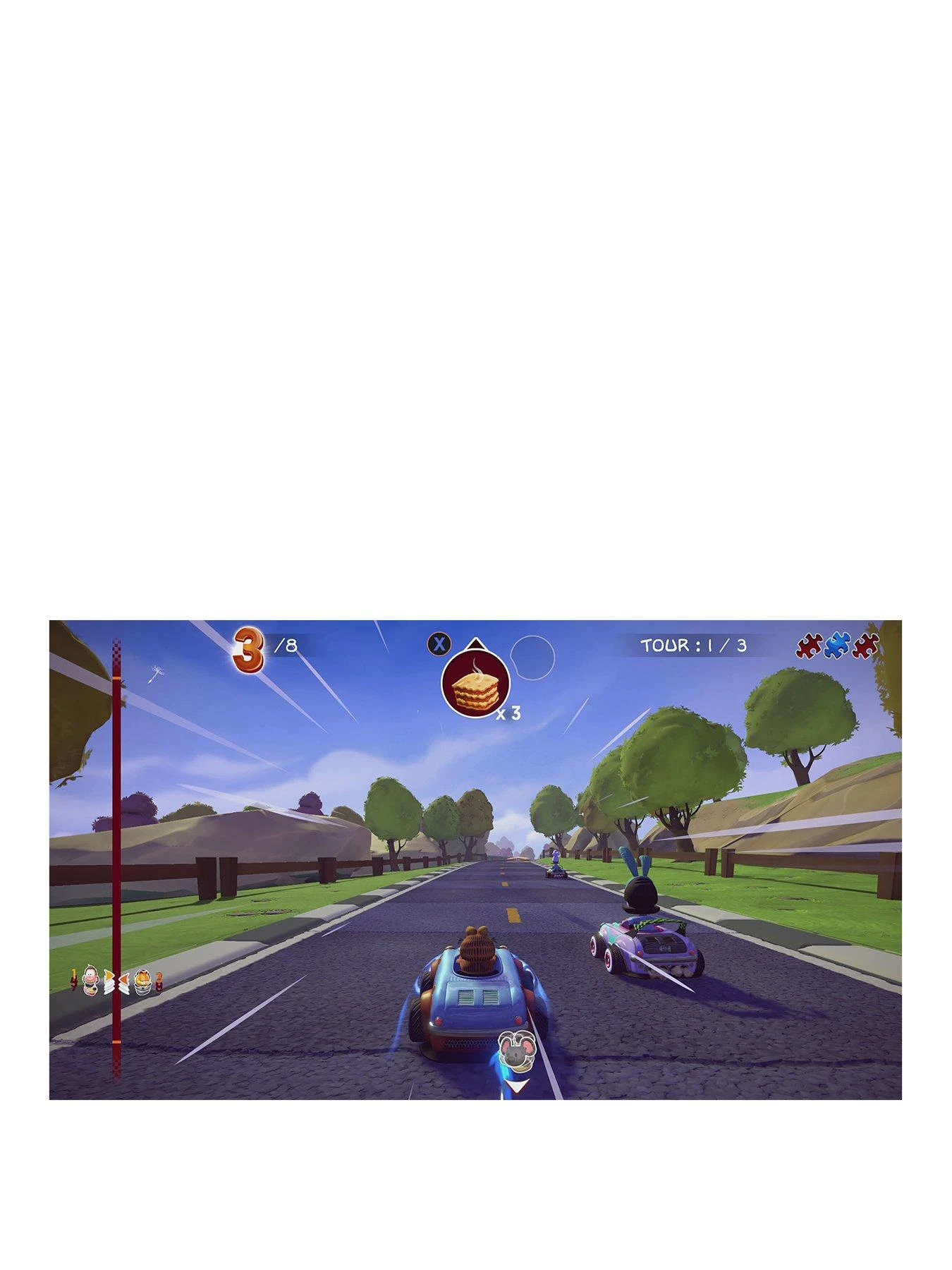 Use crazy bonus objects, like the Pillow or the Magic Wand, to gain an edge and get over the finishing line first. Are you lazy like Garfield?Take shortcuts to overtake the other racers with the Spring!Race your friends in local mode or online, with up to eight players on 16 iconic circuits from the world of Garfield.