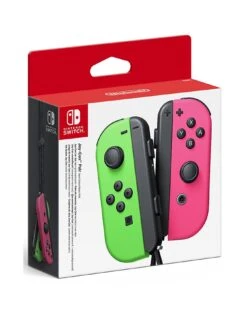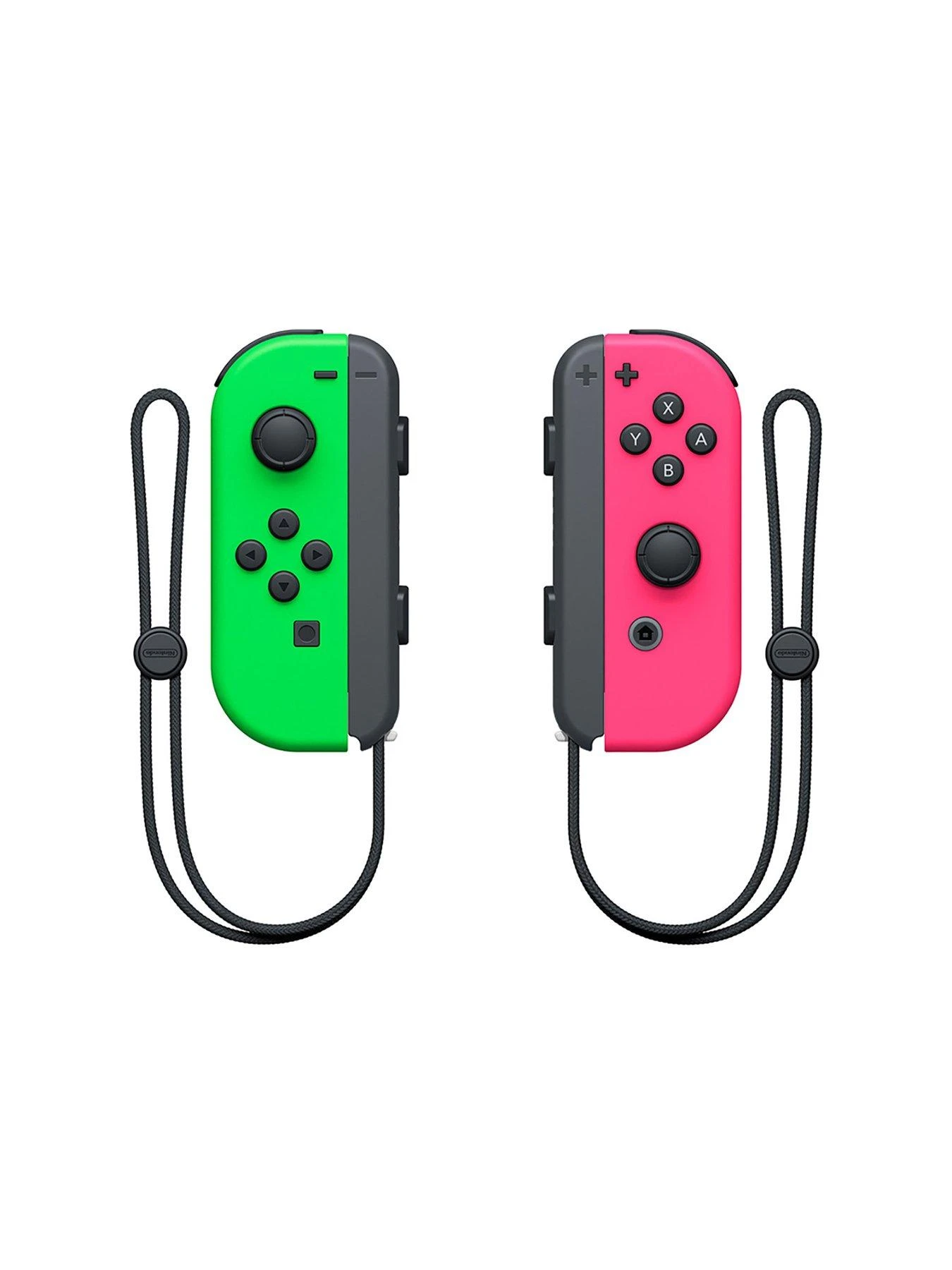 This set includes a Neon Green Joy-Con Controller (Left), a Neon Pink Joy-Con Controller (Right) and two black Nintendo Switch Joy-Con Controller Straps. The right Joy-Con Controller includes an NFC touchpoint to unlock amiibo functionality too.