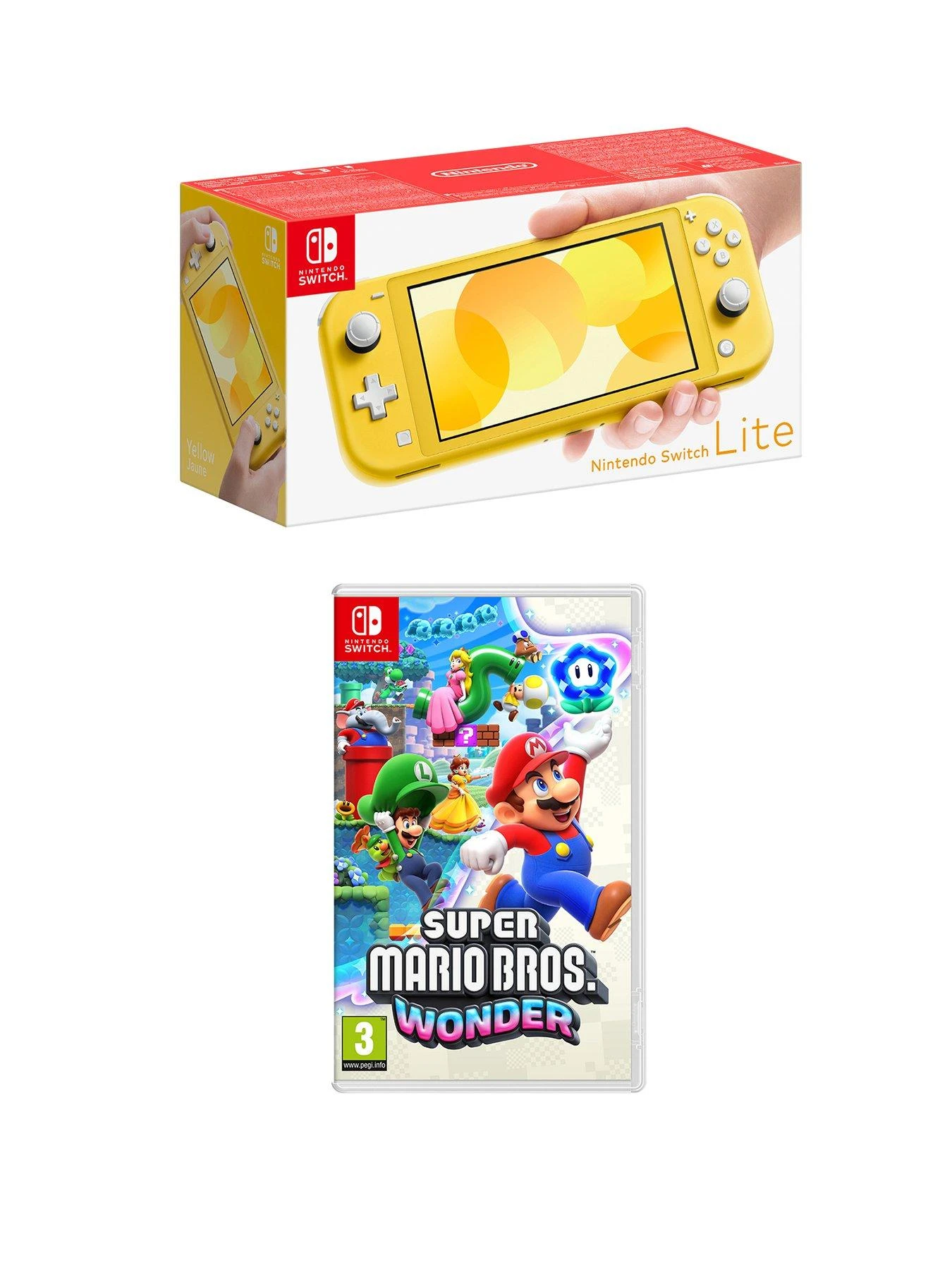 Nintendo Switch Lite Console – Blue.The console for gamers on the go. Nintendo Switch Lite is a compact, lightweight addition to the Nintendo Switch family, with integrated controls.Nintendo Switch Lite supports all Nintendo Switch software that can be played in handheld mode.It’s great for people who have lots of opportunities to play outside, and also for anyone who wants to play online or local wireless multiplayer with friends or family who already own a flagship Nintendo Switch console.As a dedicated handheld gaming device, Nintendo Switch Lite does not support output to a TV.If a game supports Joy-Con functions such as HD rumble, IR Motion Camera and Joy-Con motion sensors, some features will not be available using Nintendo Switch Lite alone. Joy-Con controllers (sold separately) are required to use these features.For games that do not support handheld mode, players can wireless connect Joy-Con controllers (sold separately) to Nintendo Switch Lite. In these cases, users will need to have a device to recharge Joy-Con controllers, such as the Joy-Con charging grip. To find play mode compatibility information for specific games, please refer to the product packaging or Nintendo eShop.Nintendo Switch Super Mario Bros. Wonder.Step into a world of wonder in Super Mario Bros. Wonder for Nintendo Switch!Classic Mario side-scrolling gameplay is turned on its head with the addition of Wonder Flowers! These game-changing items trigger spectacular moments you have to see to believe. Witness pipes coming alive, wreak havoc as a giant spiky ball, and see even more unexpected events called Wonder Effects.Pick from heroic Super Mario characters and Power-Ups Choose from familiar characters including Mario, Luigi, Peach, Daisy, Yoshi and Toad.