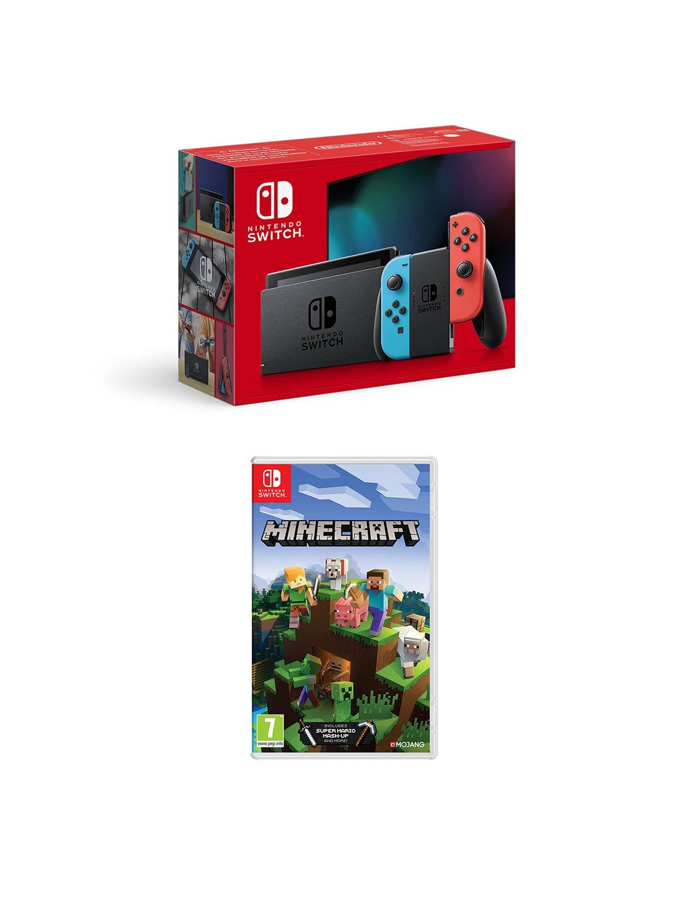 Nintendo Switch Neon Console & Minecraft Bedrock Edition – portable gaming fun for all ages.