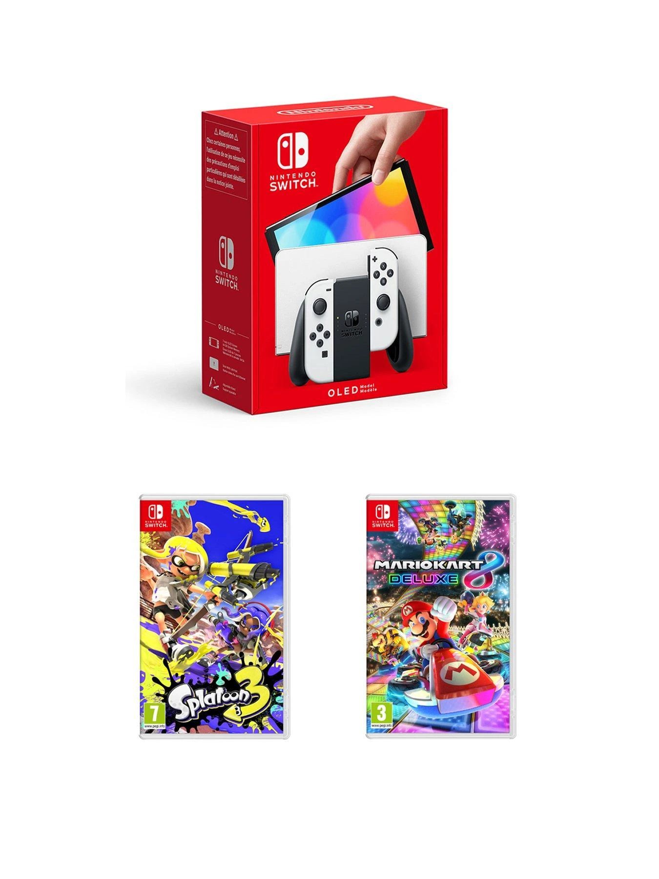Nintendo Switch OLED Console with Mario Kart 8 & Splatoon 3 – kick off the portable gaming fun for all ages.