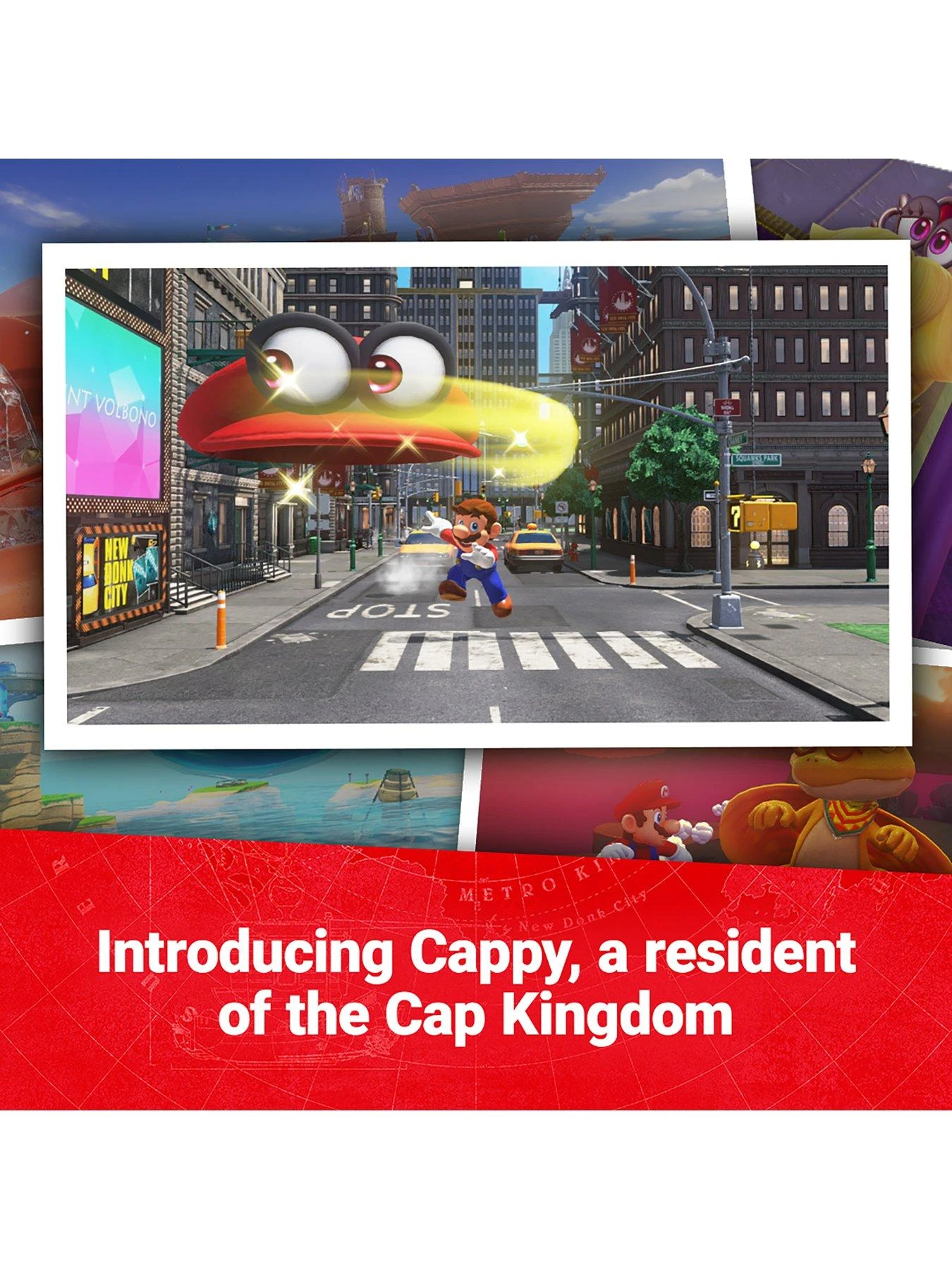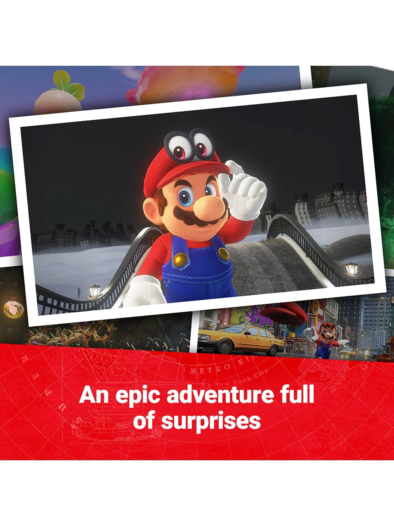 Visit astonishing new locales, like skyscraper-packed New Donk City, and run into familiar friends and foes as you try to save Princess Peach from Bowser’s clutches and foil his dastardly wedding plans.