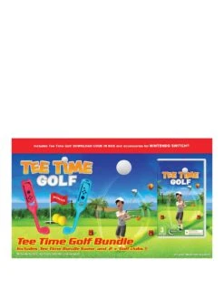 Hit a hole-in-one with Tee Time Golf! Swing away with motion controls or launch golf balls using buttons. Gain experience to level up and blast 300-yard drives. Earn coins to customise your golfer’s outfit and gear. Join with up to 3 of your friends in local multiplayer and watch as your friend chips in from the bunker. Enjoy a relaxing round of golf on any of the 8 beautiful 18-hole courses. When you get tired of playing the same courses, jump into the course designer and build the golf course of your dreams and share it with others. Tee Time Golf offers a fun and highly accessible social experience for Nintendo Switch owners! BONUS CONTENT: Includes 2 x foam golf balls and a golf hole for indoor use. Key Features: ? Tee Time Golf (download code in box) + 2 x Golf Clubs ? Attach the controllers into the golf clubs for even more fun ? 4 player local play with your golf buddies. ? Play 8 beautiful, 18 hole courses with attractive hand painted graphics. ? Earn coins and gain experience to upgrade your golfer. ? Use motion controls for that authentic golf swing feel. Re-create your favourite courses, with the in-game course
