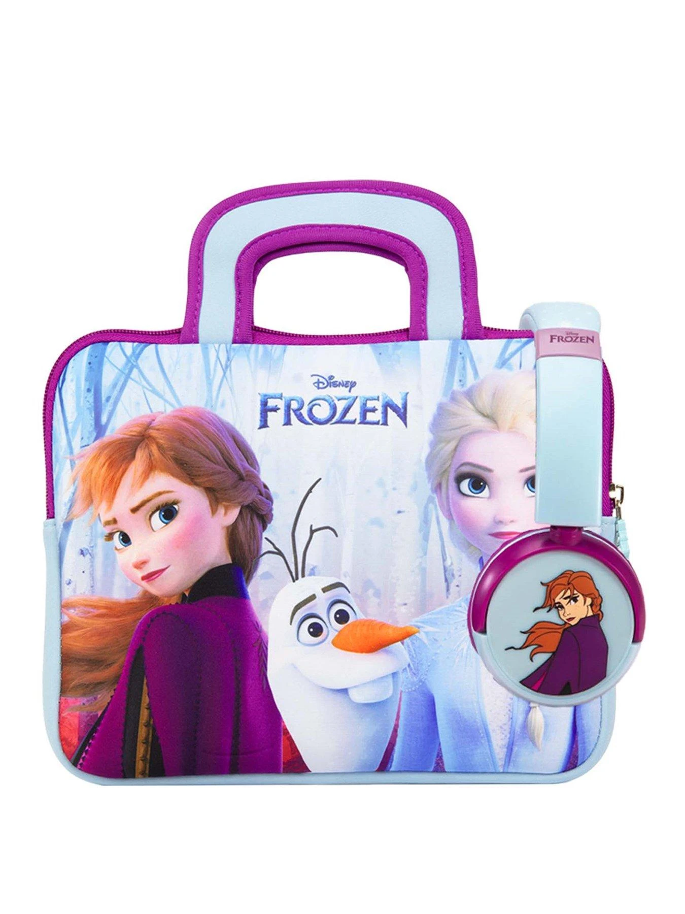 Carry your tablet around in style, and listen to your favourite tunes with Elsa, Anna, Olaf and more with the super-cool Frozen Carry Bag and Headphone Bundle!