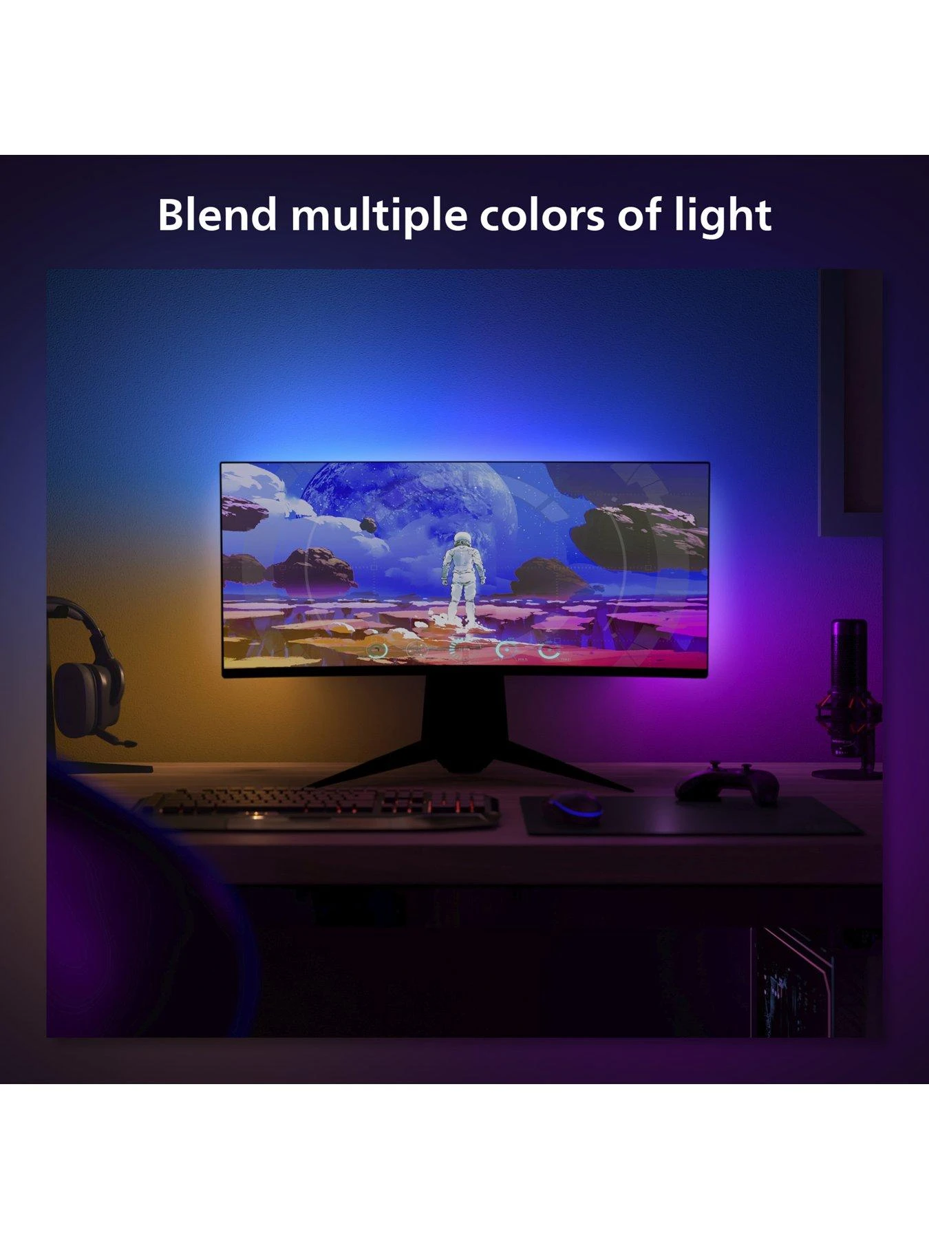- The Hue Play gradient lightstrip for PC mounts to the back of your single- or triple-monitor setup, bending easily around its corners.