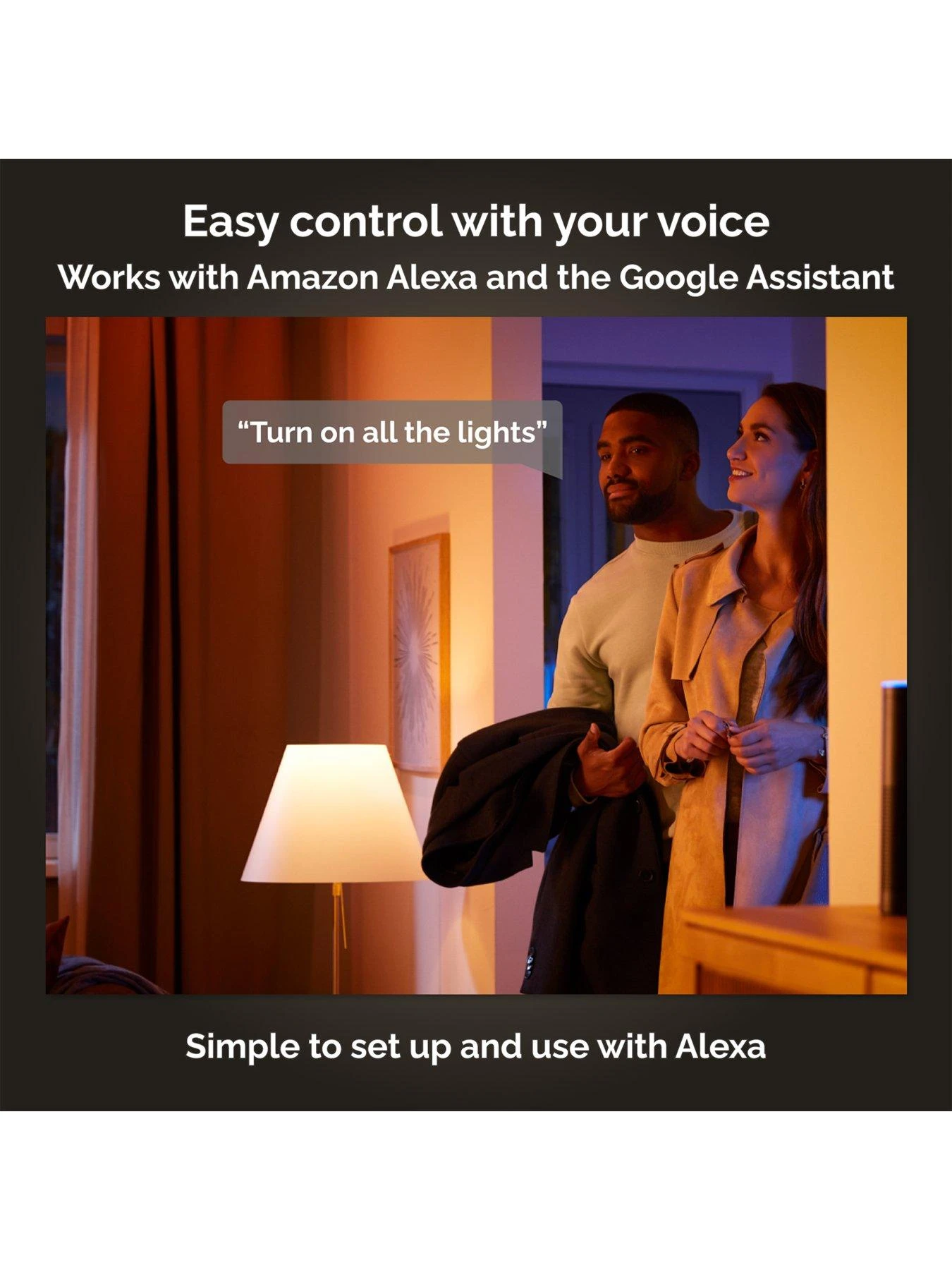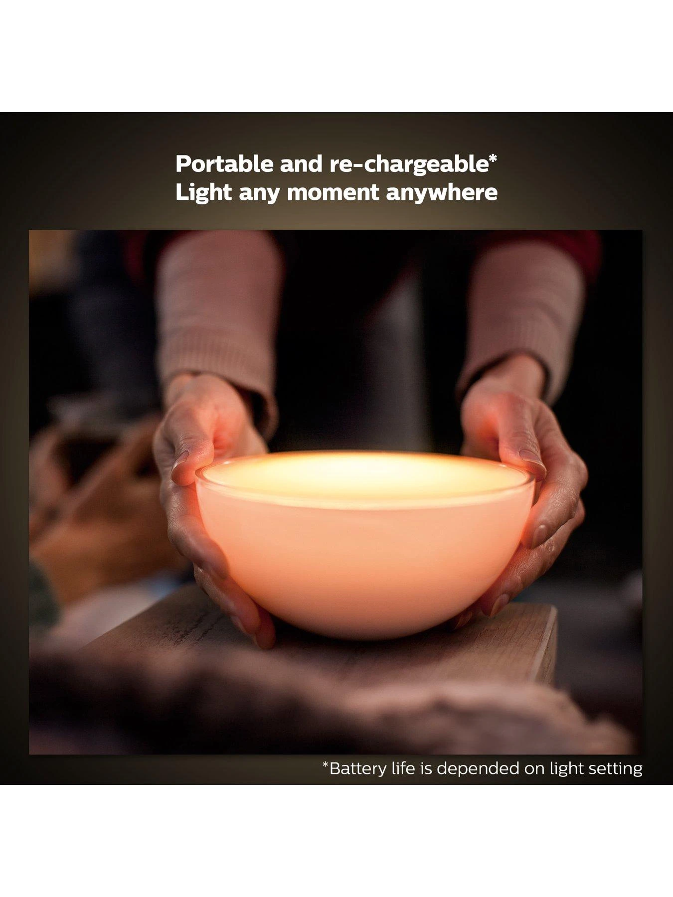 Take smart light with you with the portable Hue Go. From a splash of colour to a mood-setting centrepiece, the Hue Go lets you set the perfect ambience.??Alongside the dimmer switch you can dim or brighten the room, toogle light scenes or get the best light based on the time of day.
