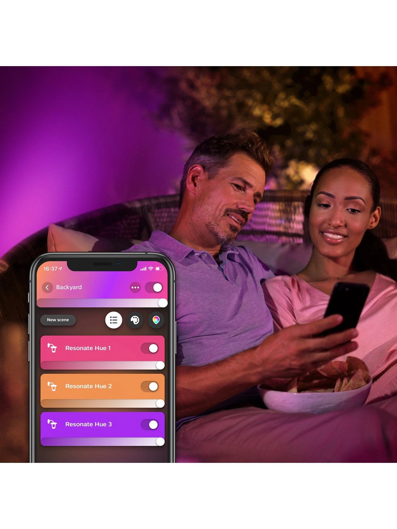 - Unwind with warm to cool white light