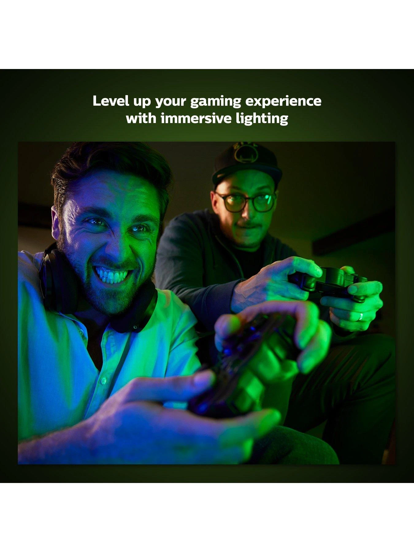Expand your home cinema with surround lighting. The Philips Hue Play HDMI Sync Box lets you synchronise your Philips Hue smart lights with movies, TV, console gaming and music, creating a truly immersive entertainment experience in your own home.