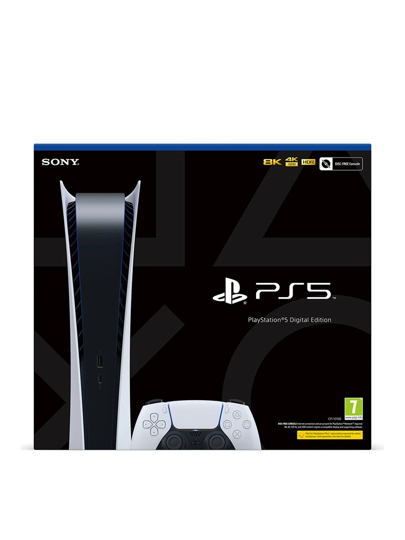 PS5 Digital Edition is an all-digital version of the PS5 console with no disc drive. Sign into your account for PlayStation Network and go to PlayStationStore to buy and download games.*