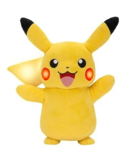 With over 30 unique reactions, you will feel a real bond with this adorable plush. Pressing and holding on Pikachu’s head will cause him to prepare for attack! The longer you hold, the more powerful Pikachu’s attack becomes! Release his head and watch Pikachu react with sounds, movement, and light features in the cheeks and tail!