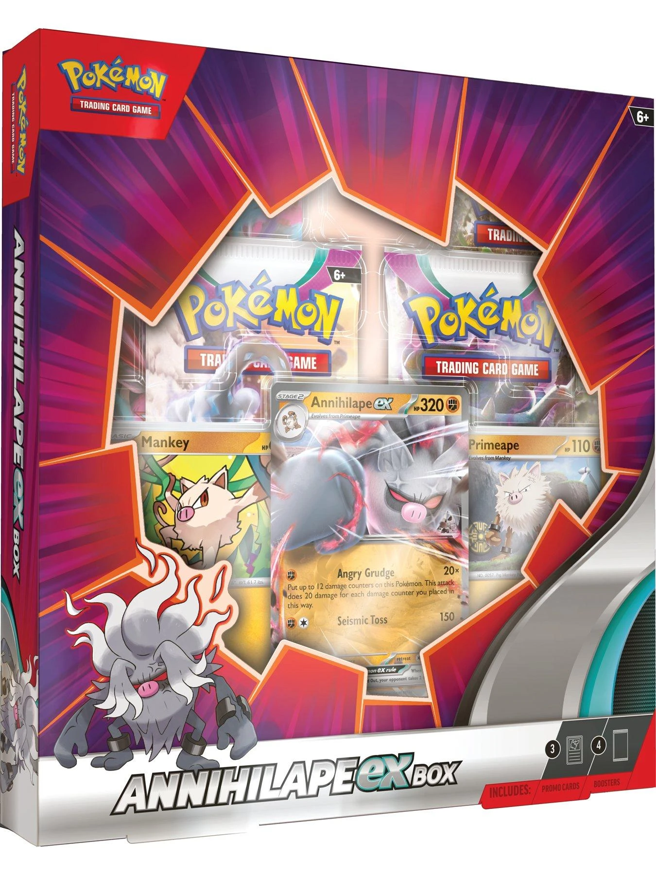 Unleash the Rage of an Angry Grudge – with Annihilape ex! Your opponent will come to fear the Angry Grudge of Annihilape ex! Damage only makes this powerful Pokémon ex stronger, and it’s joined by Mankey and Primeape to help you get it into play right away.