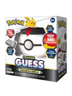 Test your Pokémon Trainer knowledge with Trainer Guess Champions Edition! Think of a Pokémon and I will guess it. Just think of a Pokémon and answer the questions. Trainer Guess will figure out what Pokémon you are thinking of. AMAZING! GUESS and COLLECT 136 iconic Pokémon of the greatest Trainers of all regions from Kanto to Galar. Pokémon belonging to phenomenal Trainers: Gym Leaders, Elite Four members and Champions! With the Timer Ball. All Pokémon will automatically be stored in your electronic collection. The clever Poké Ball uses speech recognition technology – no buttons or reading required. Take it everywhere, play indoors or out. Field Guide included for players to discover all Pokémon through their names, pictures and details. Pokémon Trainer Guess can go everywhere! Play it at home or outdoors. Let’s try to collect them all! Suitable from 6 years. Styles may vary.