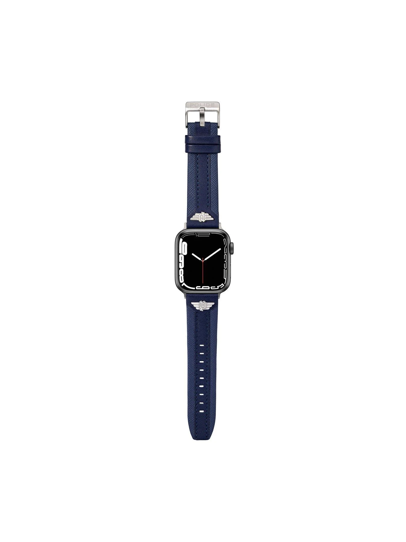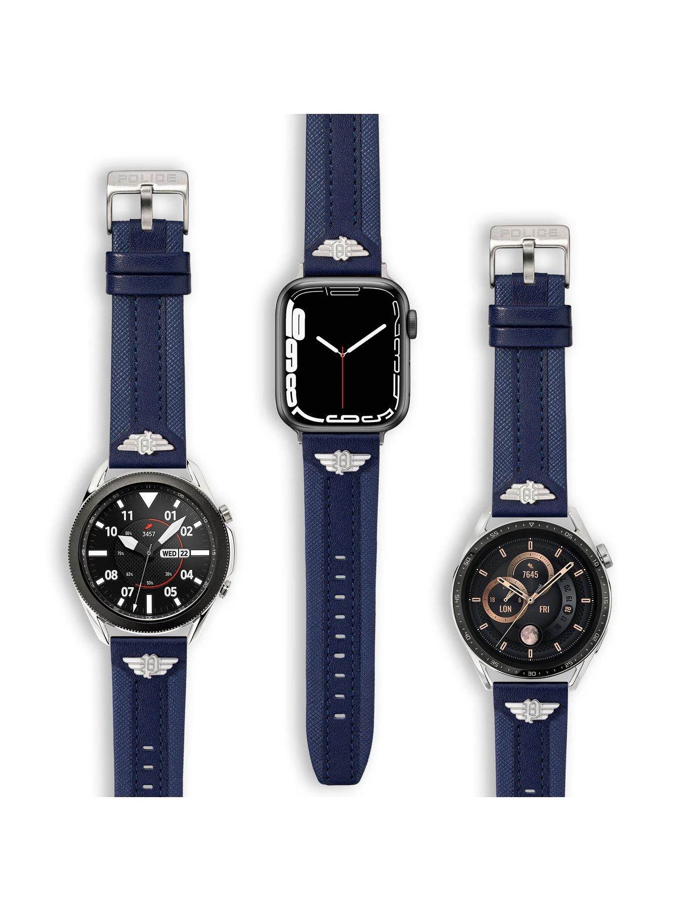 POLICE WINGS BLUE LEATHER STRAP COMPATIBLE WITH APPLE CASE 38/40/41, ANY SAMSUNG, HUAWIE OR SMART WATCH WITH 20 MM BAND.
