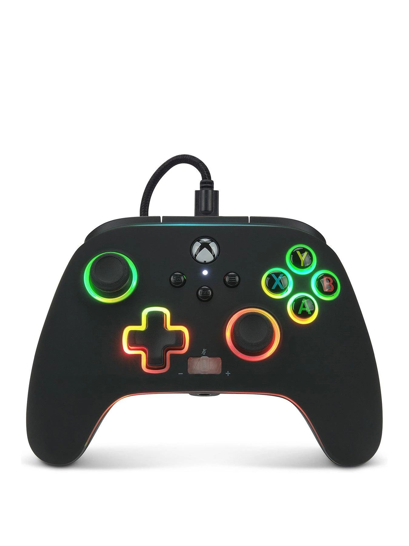 Achieve brilliant gameplay with the amazing PowerA Spectra Infinity Enhanced Wired Controller for Xbox Series X|S. Officially licensed by Xbox, this one-of-a-kind gamepad gives you brilliant power and LED customization. Dial-in your favorite color combination with vivid colors, a range of shades, across three distinct Spectra Zones. Plus, super-cool LED effects enable ‘Breathing’ or ‘Solid’ Modes. Of course, you’ll gain a competitive advantage with pro-style features like two mappable buttons you can program on-the-fly, and three-way trigger locks for super-precise throws. A 3.5mm stereo audio jack with one-touch mic mute, and an easy-to-use Share Button help you stay connected with fellow gamers. Powerful dual rumble motors give you an incredibly immersive gaming experience that you can feel.